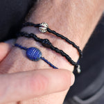 Bracelet argent 925 cordon tressé noir avec tête de mort noire
