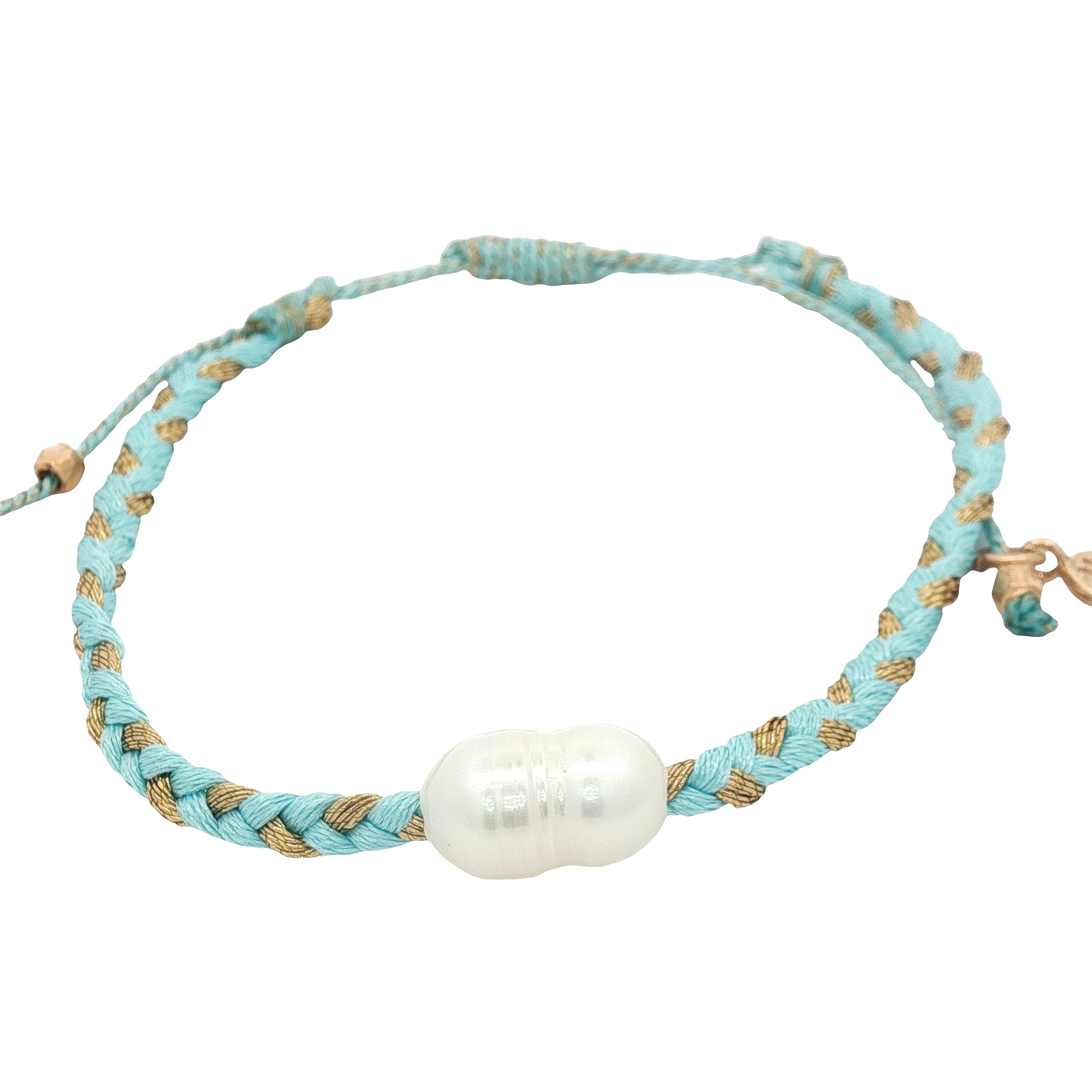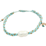 Bracelet cordon turquoise et doré avec perle de culture