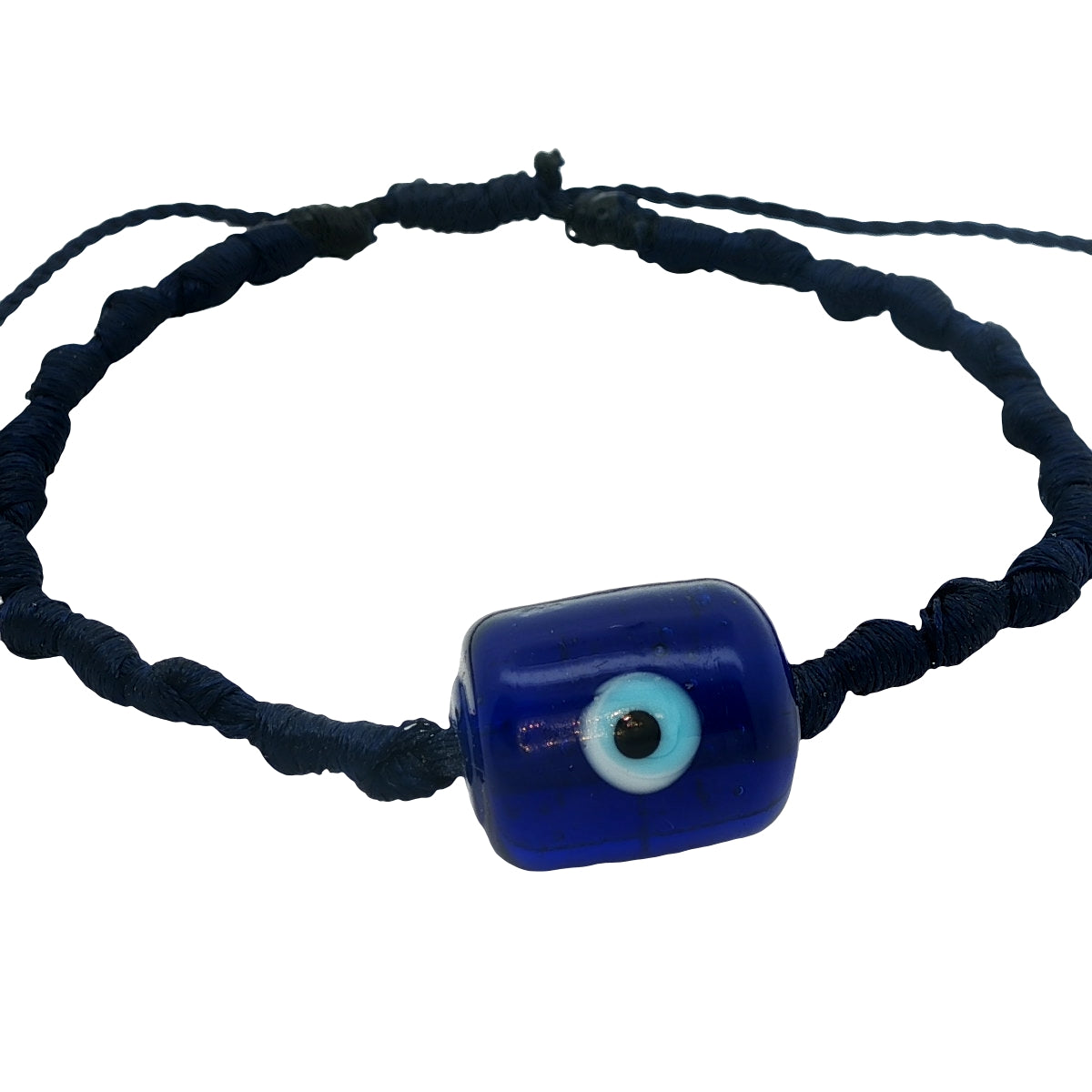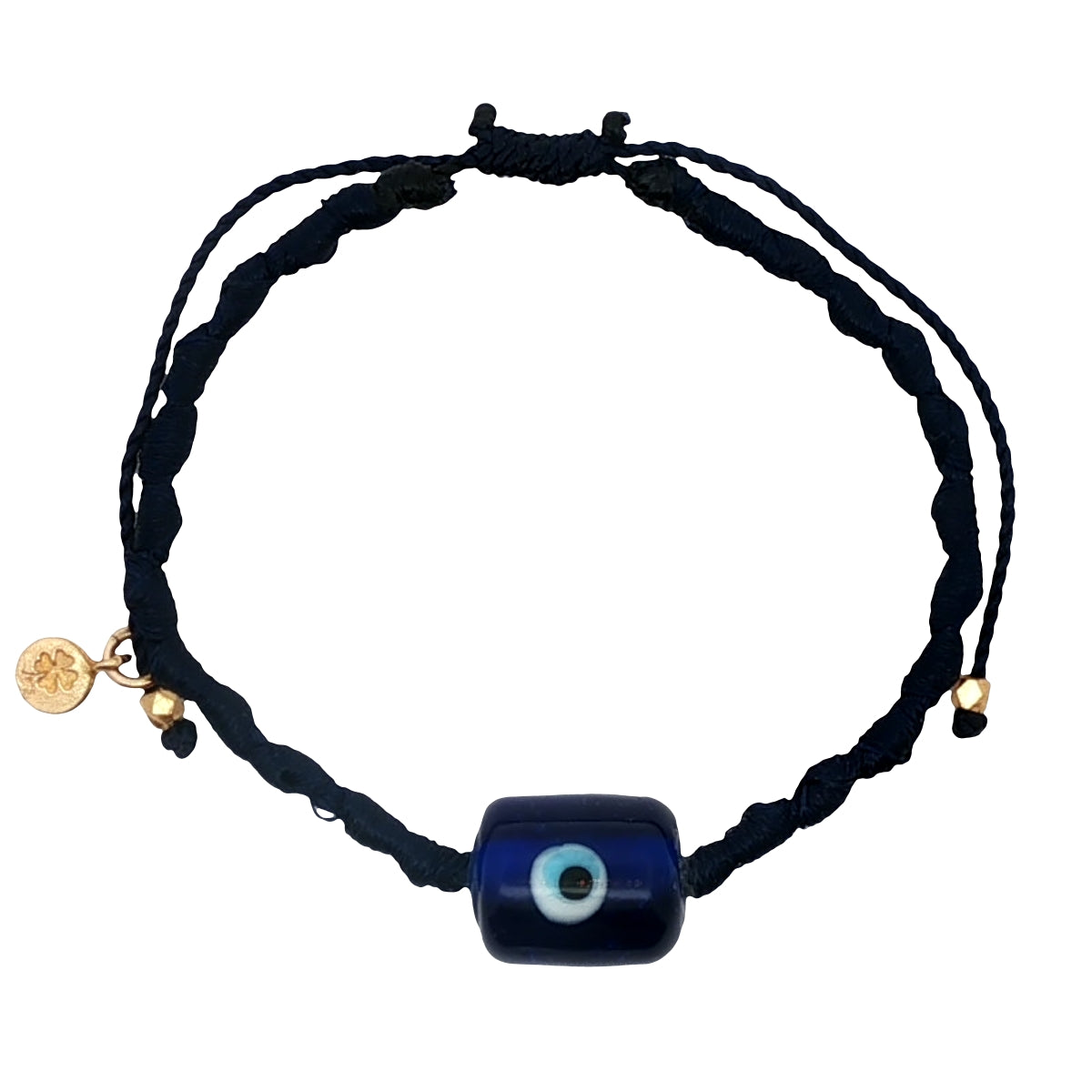 Bracelet doré cordon tressé bleu marine oeil verre soufflé