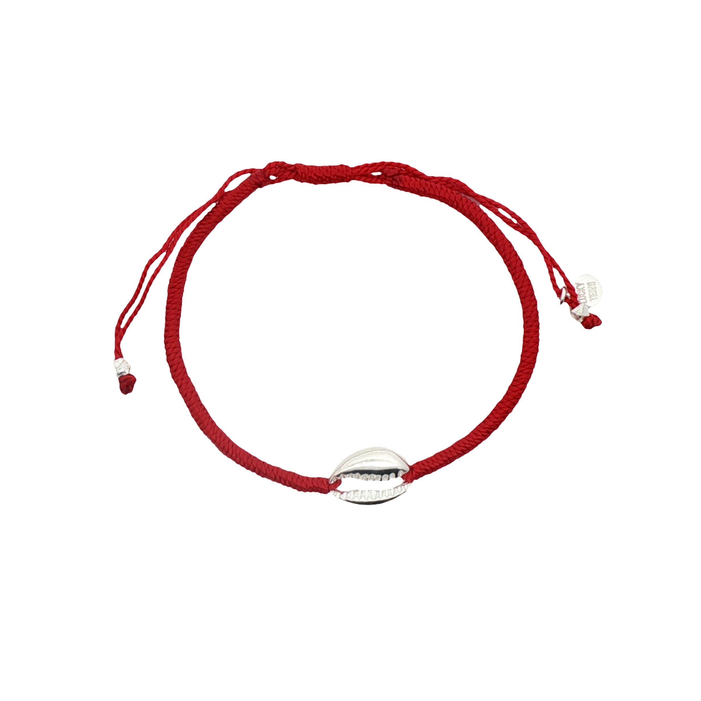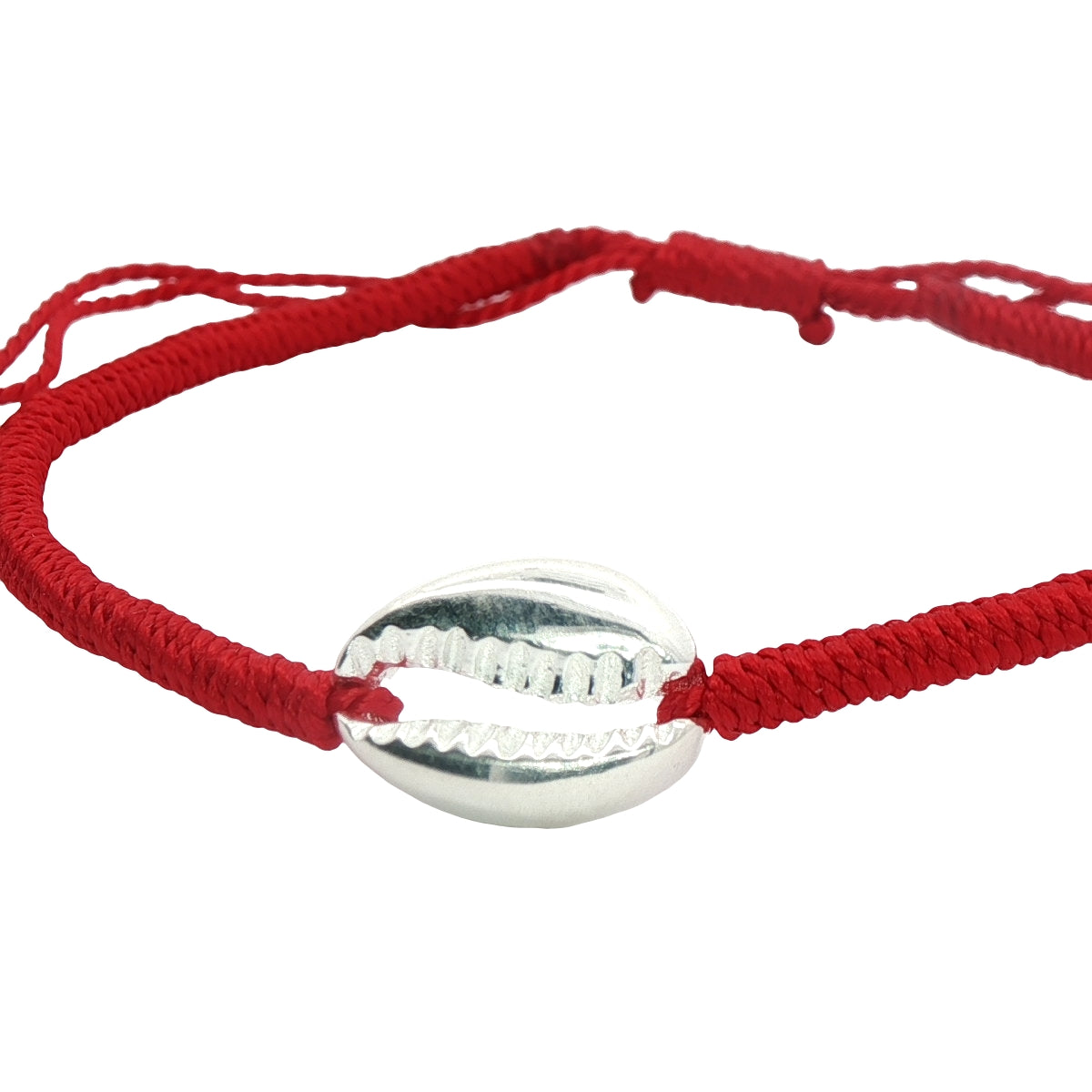 Bracelet sur cordon rouge avec cauri en argent 925