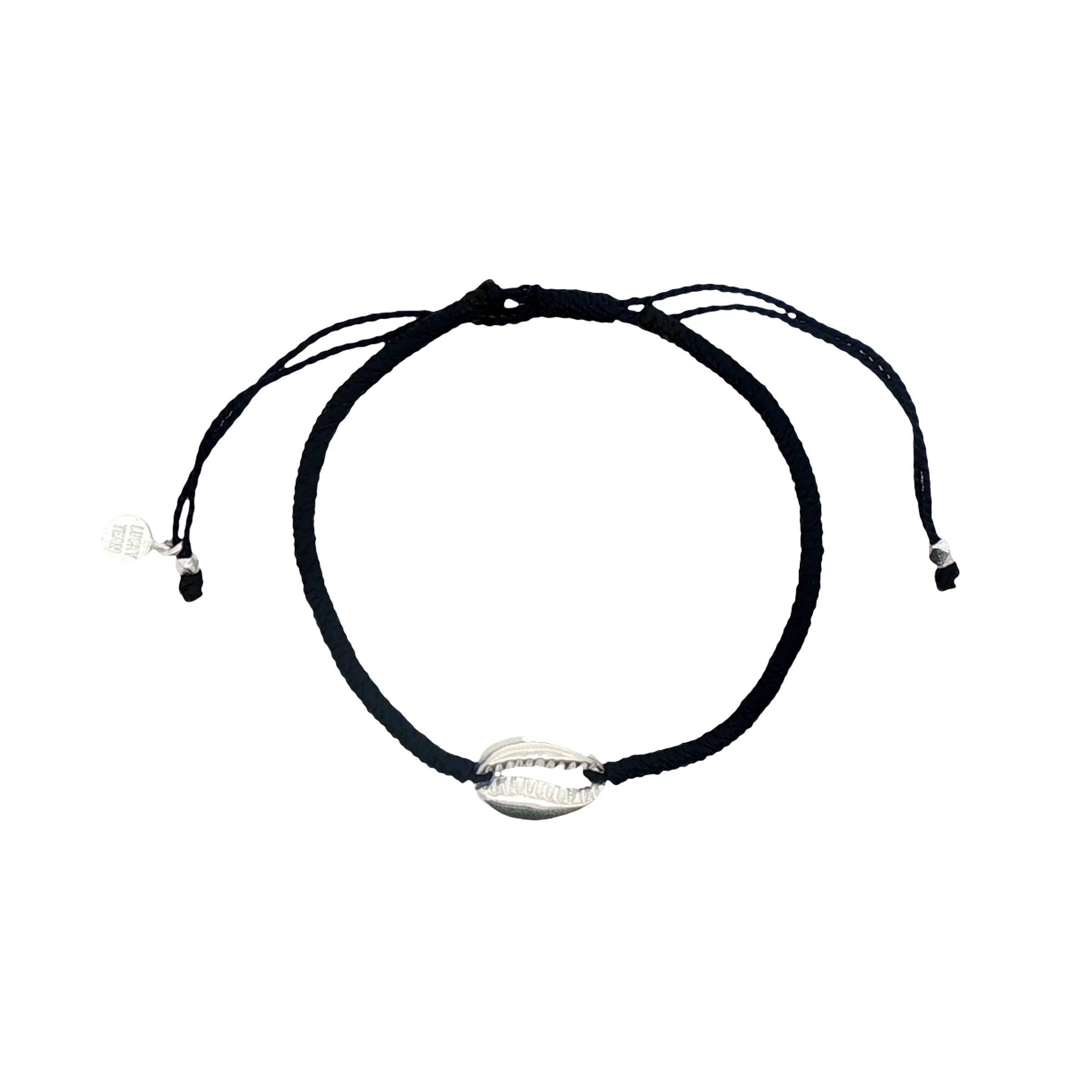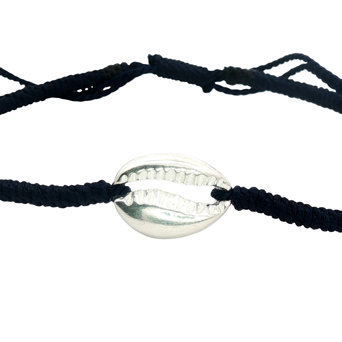 Bracelet sur cordon noir avec cauri en argent 925