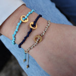 Bracelet sur cordon turquoise médaille dorée coeur ajouré