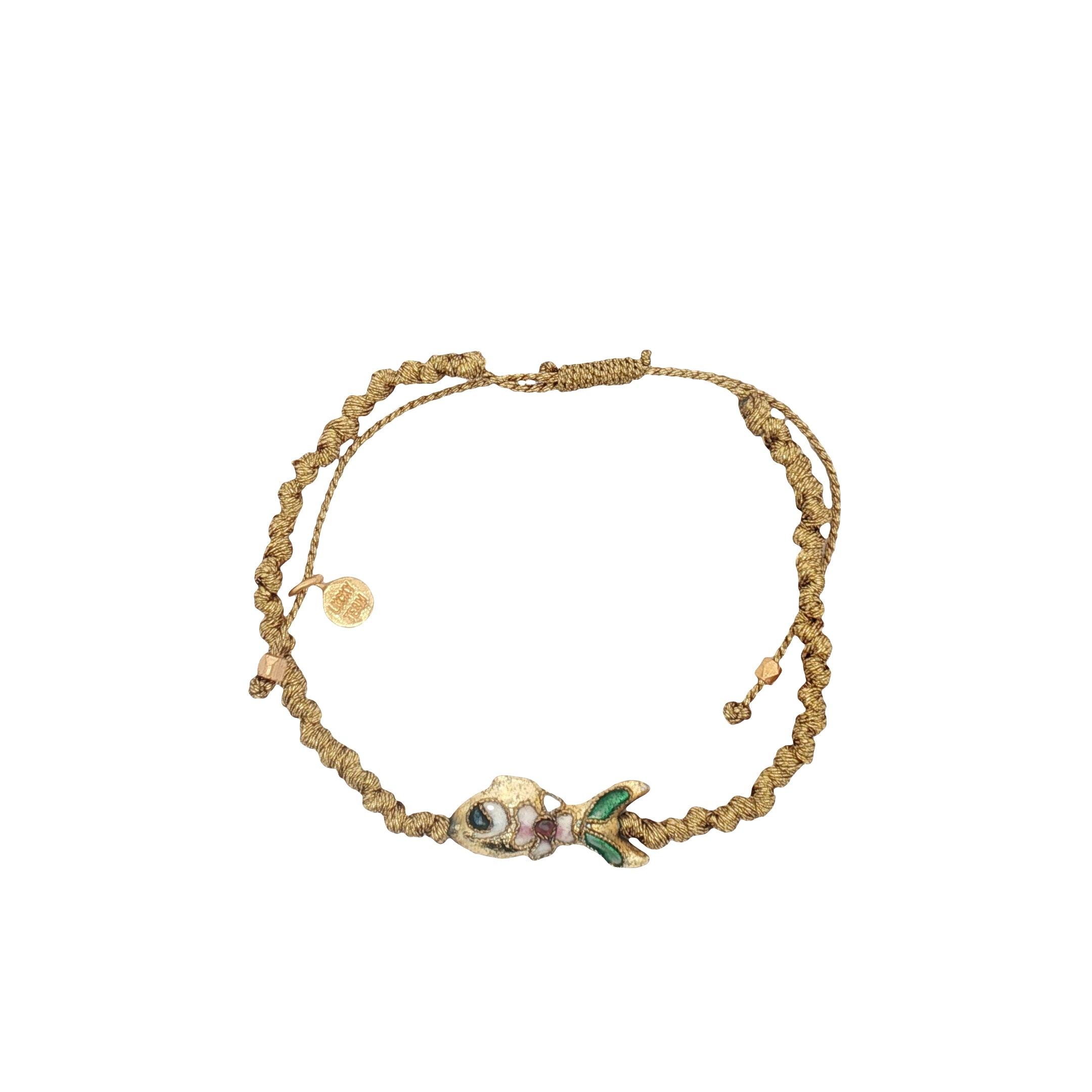Bracelet cordon doré et pierre facettée - ONYX VERTE