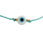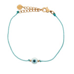 Bracelet doré cordon turquoise avec oeil rond blanc