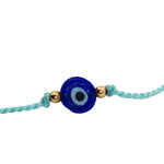 Bracelet doré cordon turquoise avec oeil rond bleu foncé