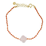 Bracelet doré petites pierres cornaline et trèfle en quartz rose