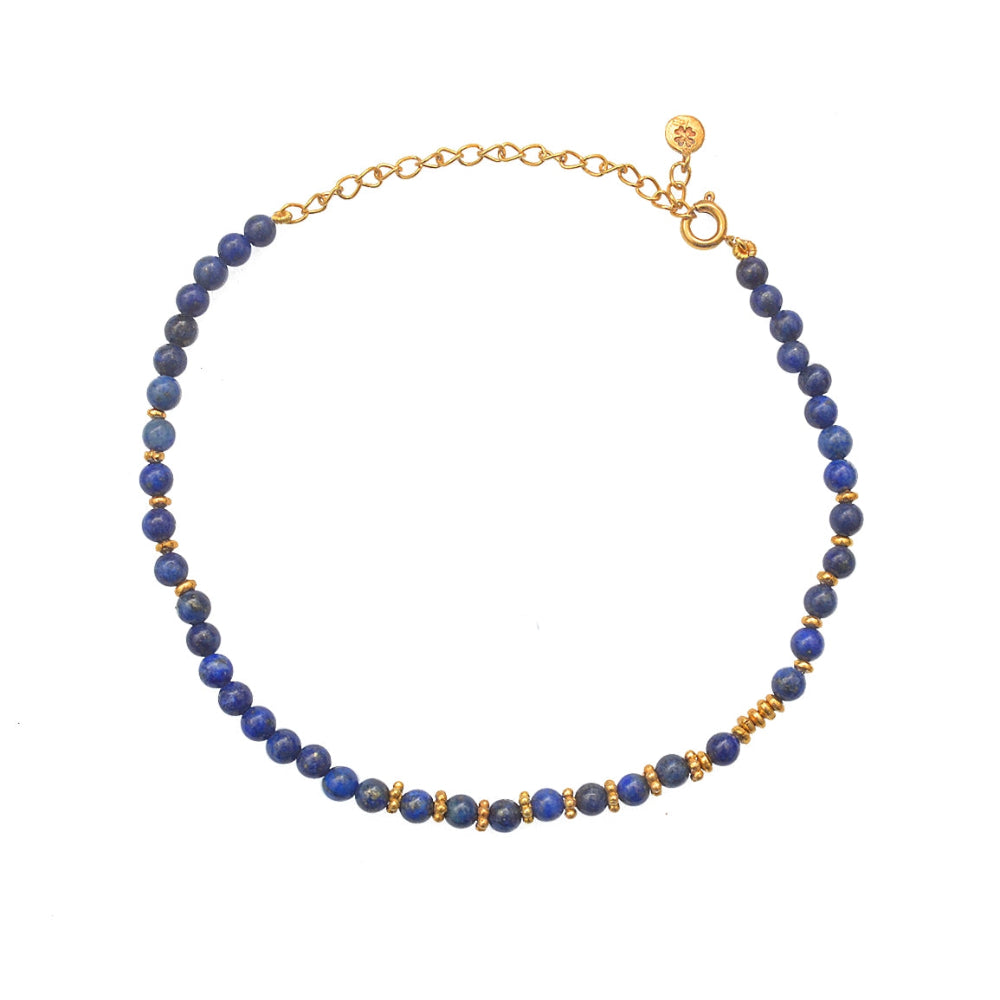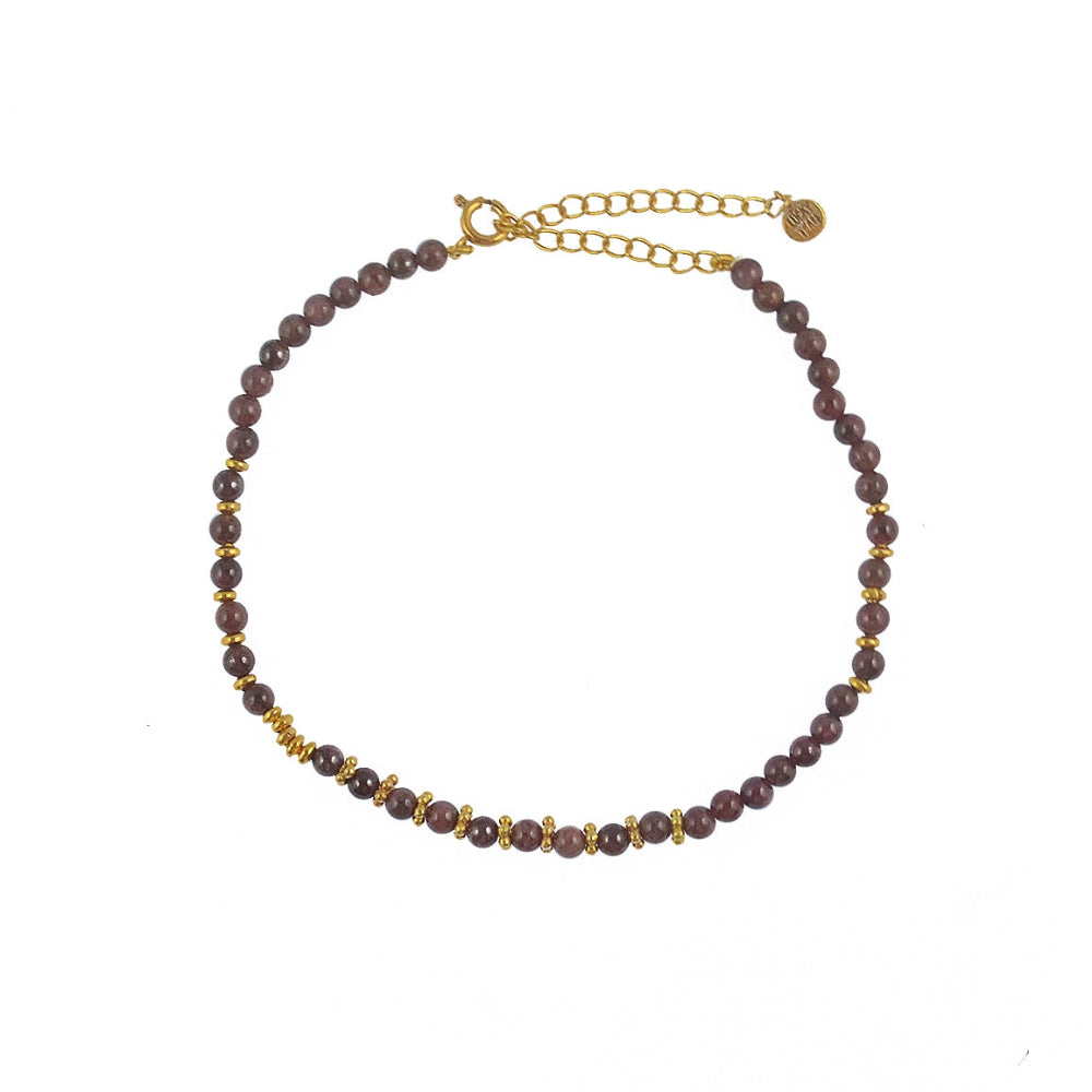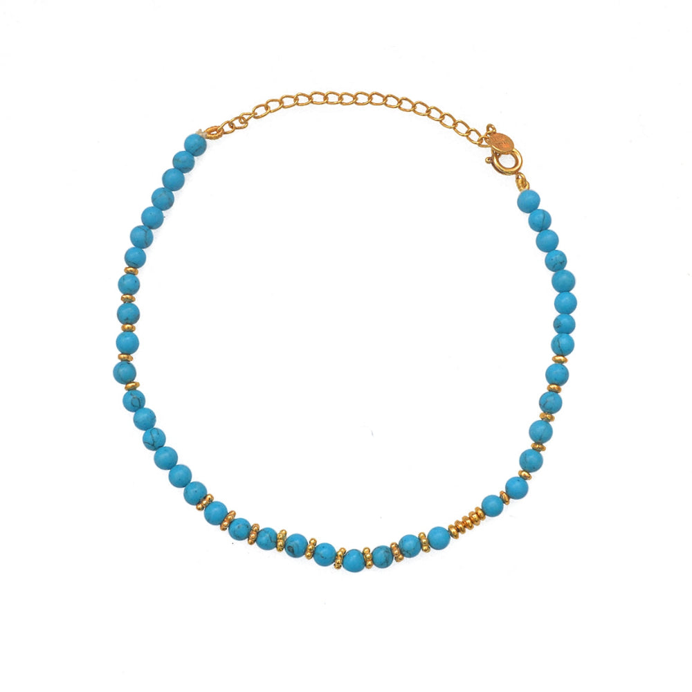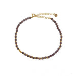 Bracelet de cheville en laiton doré à l'or fin 18k et pierres naturelles taillées rondes. Taille: 21 + 6