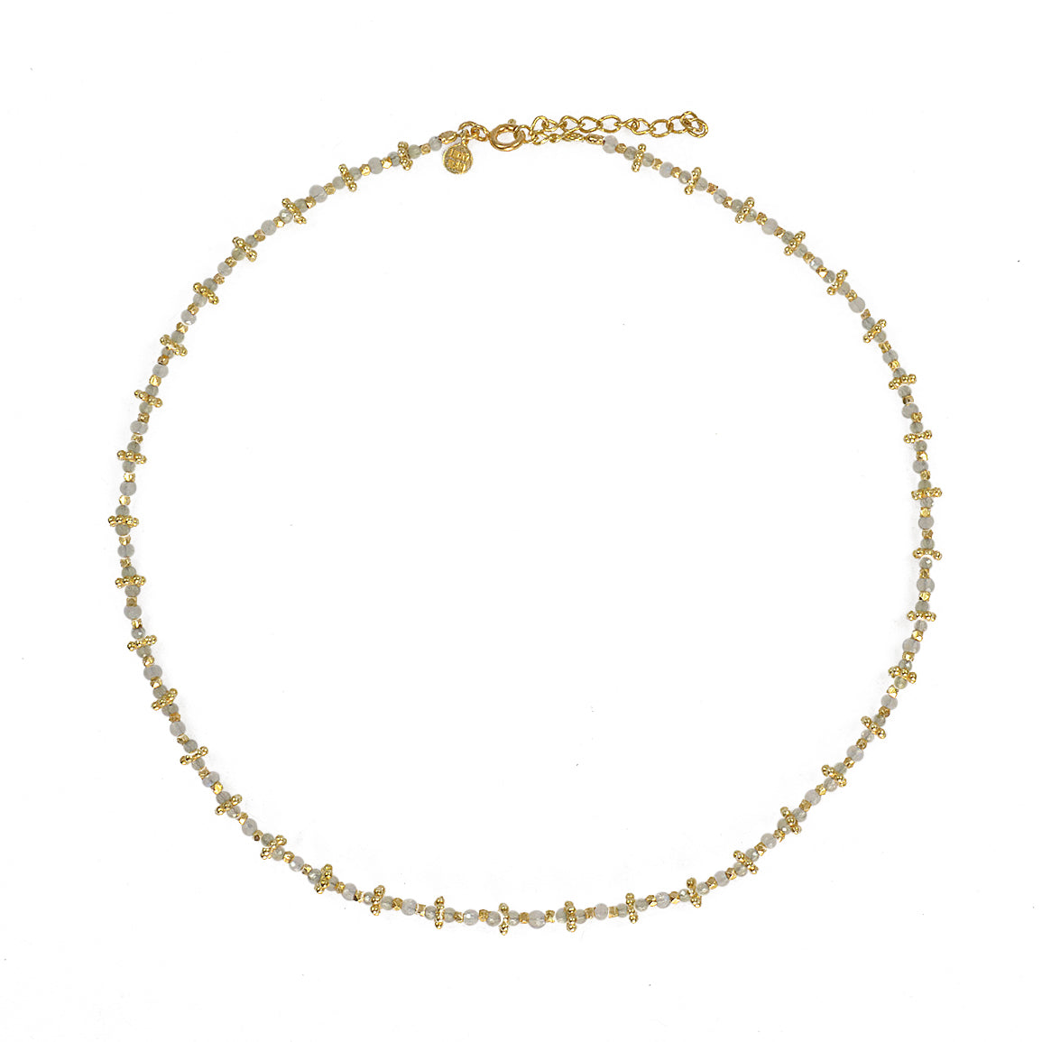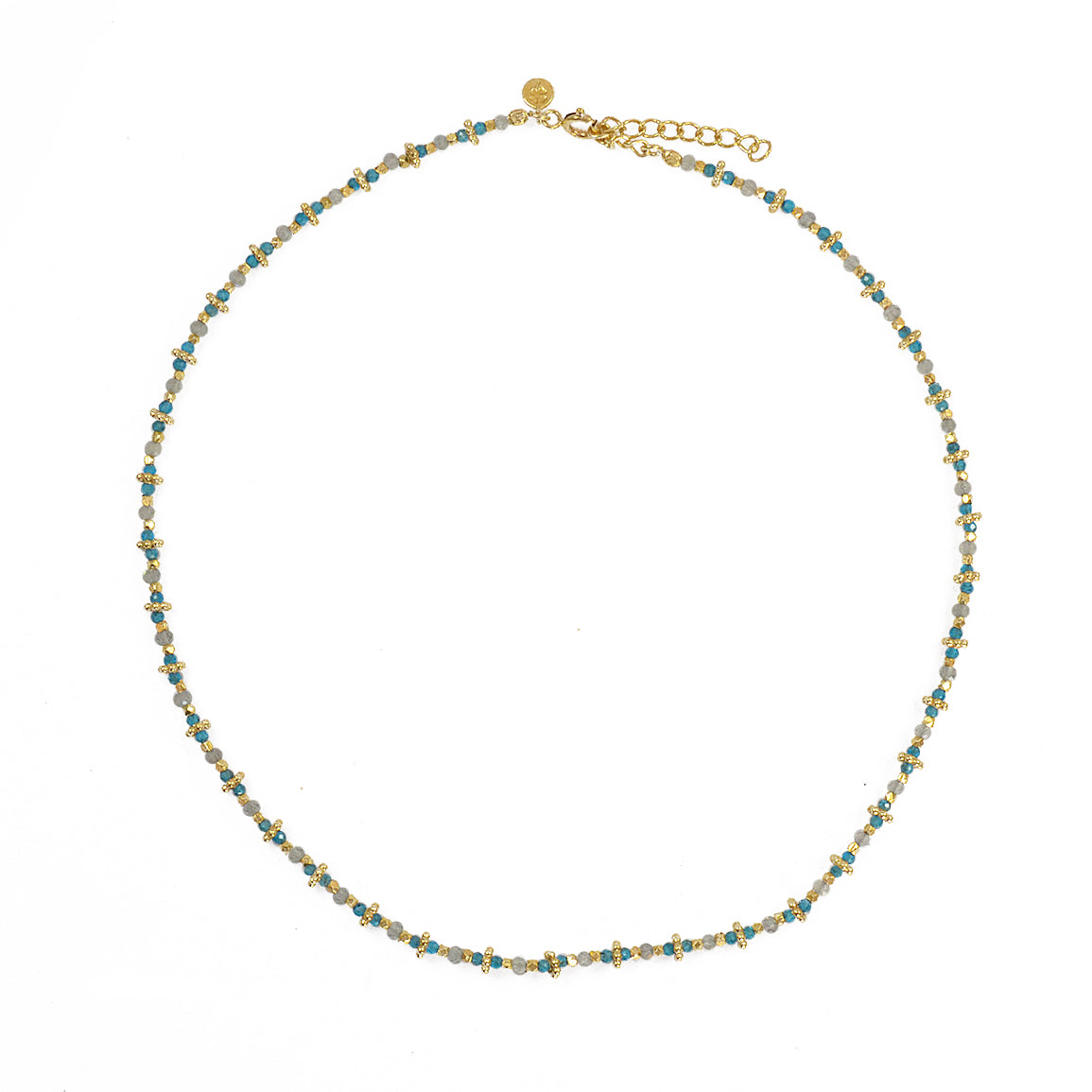 Collier doré duo de pierres et couronnes dorées 42 cm