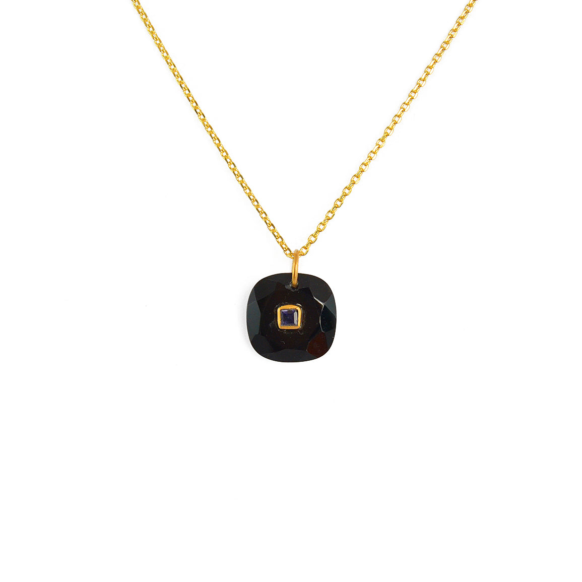 Pendentif carré en pierre naturelle facettée : 19 mm