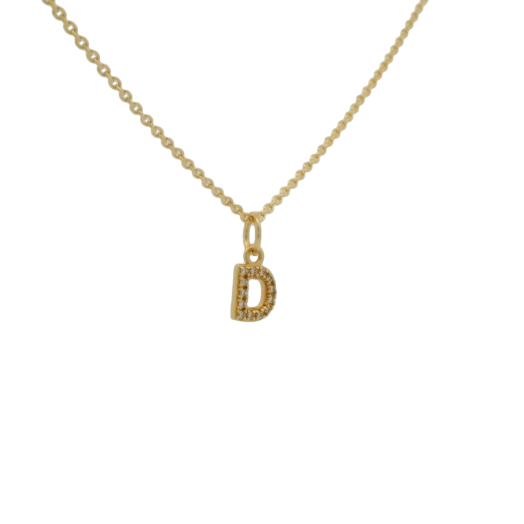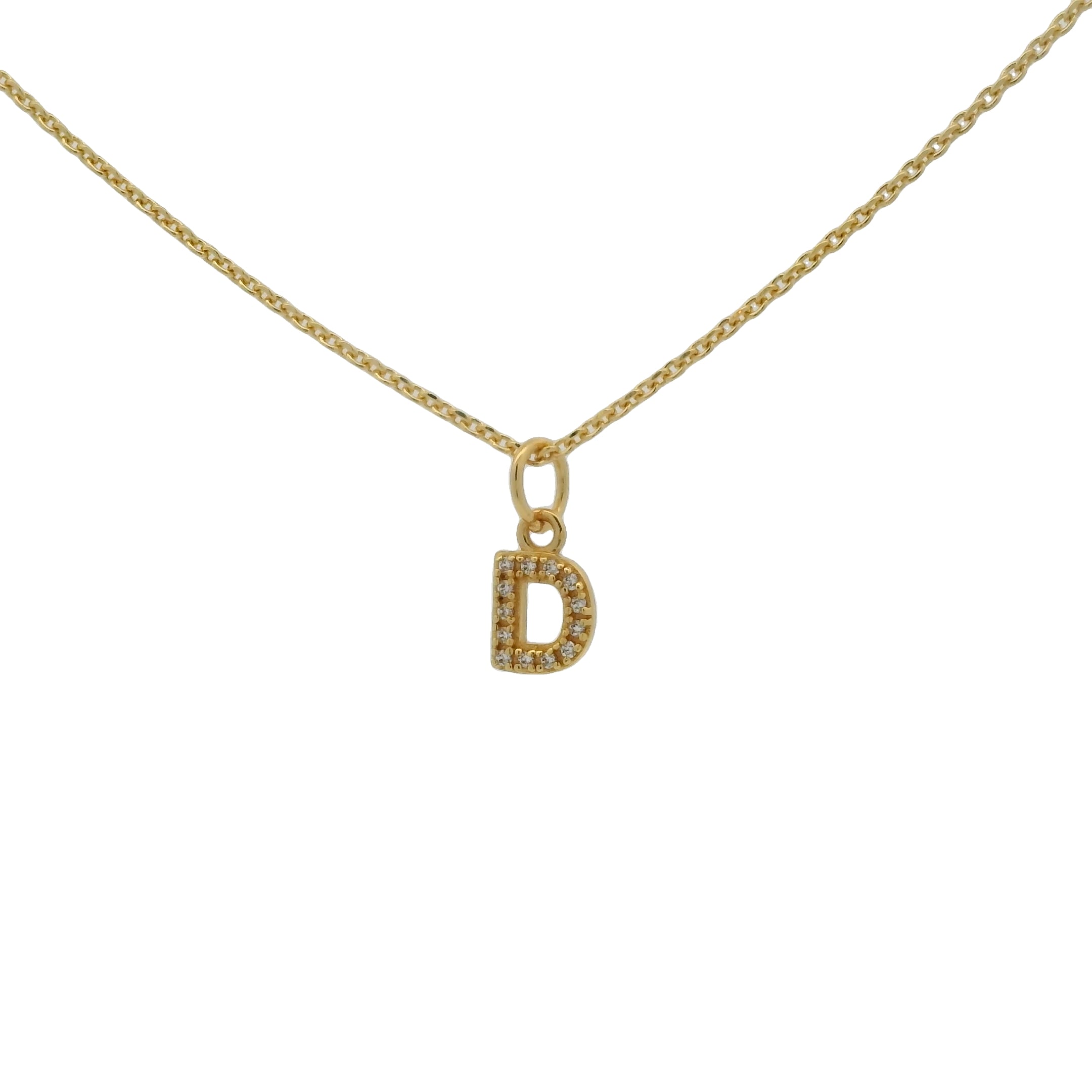 Petite lettre "D" dorée avec zircons blancs : 5 mm