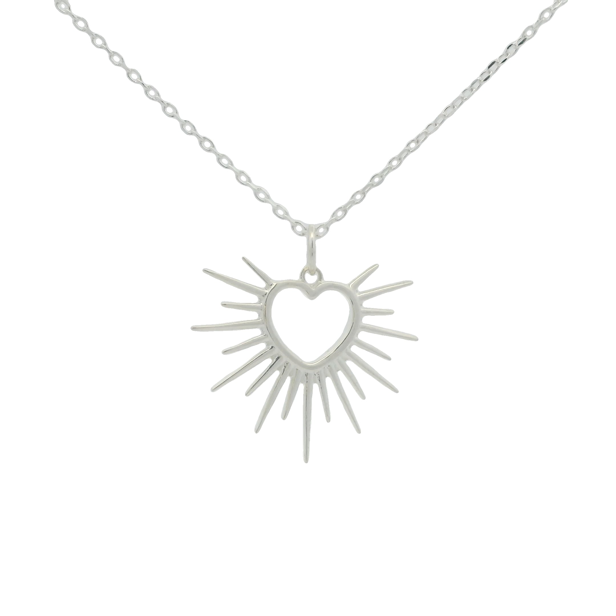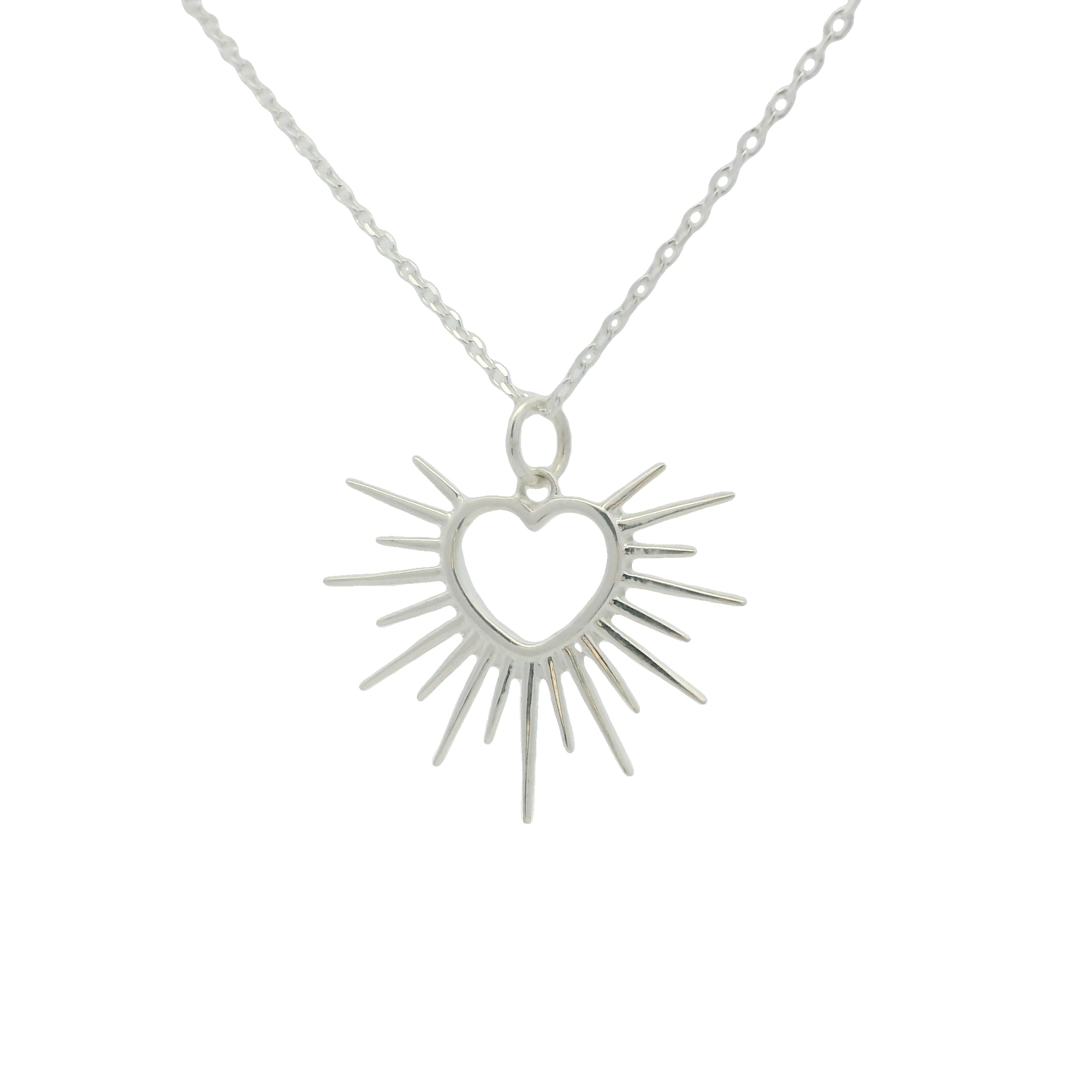 Collier en argent 925 pendentif coeur soleil 42 cm