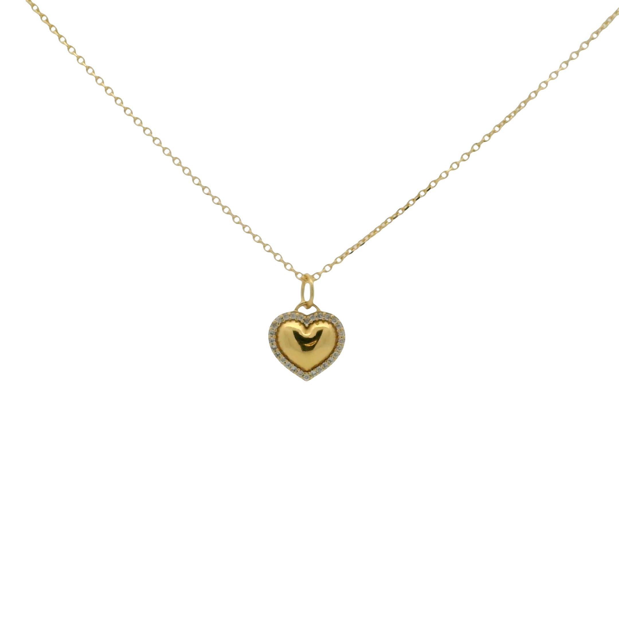 Pendentif coeur bombé et zircons blancs 1cm x 1cm