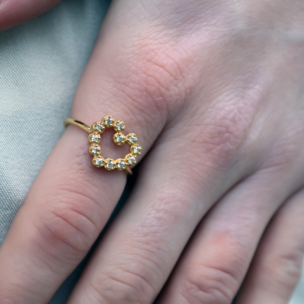 Bague dorée coeur et zircons