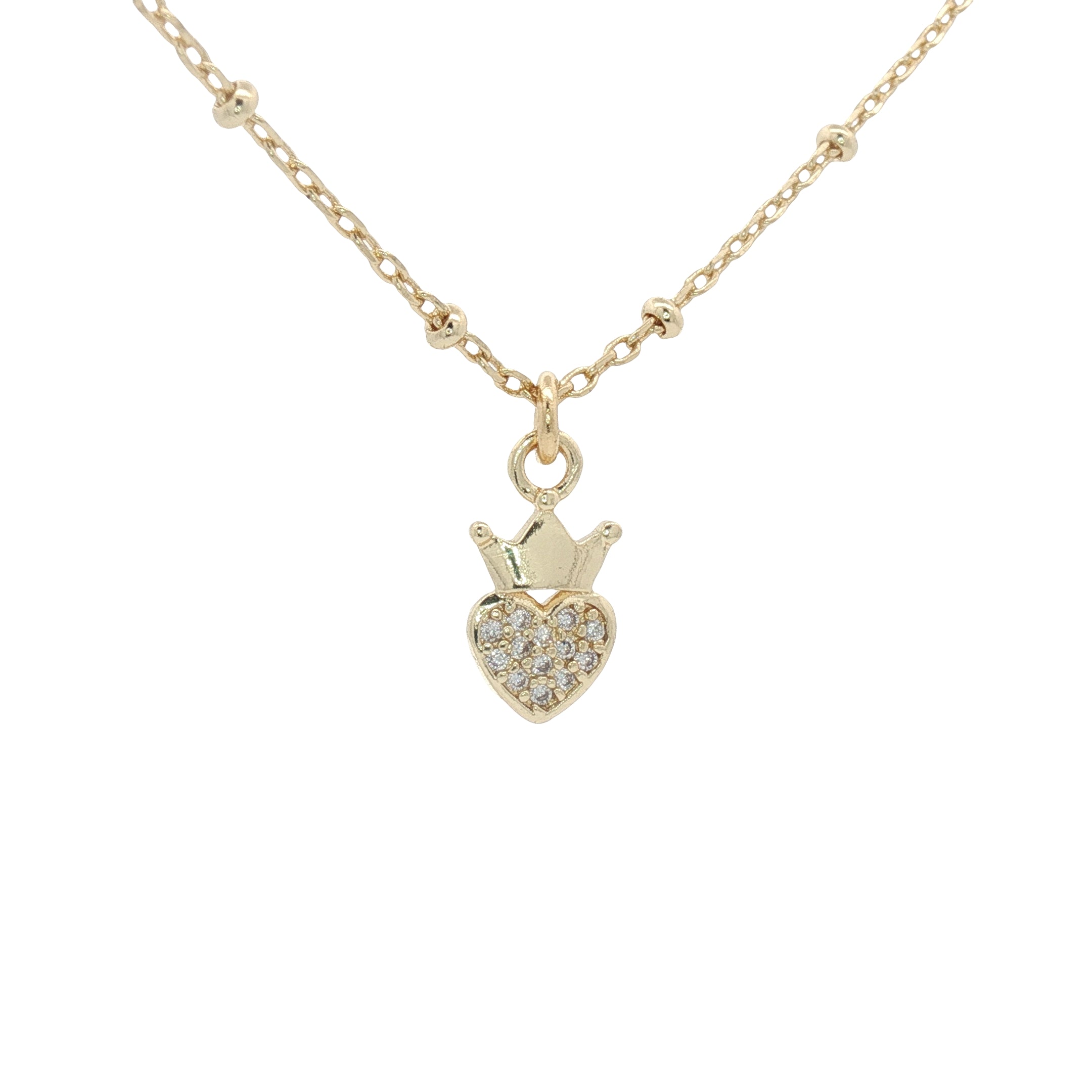 Collier doré mini coeur avec zircons et couronne 38 cm