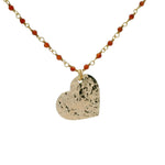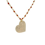 Collier rosary doré onyx rouge et coeur 70cm