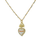 Pendentif coeur en résine blanche et zircons : 25 mm