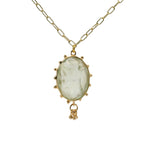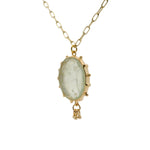 Collier doré grande pierre préhnite ovale et pampilles 60cm