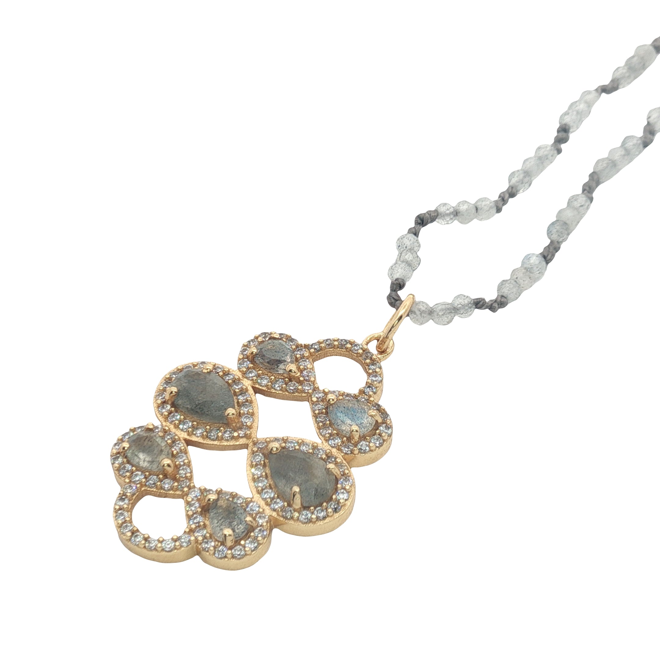 Collier avec pierres facettées en labradorite espacées de noeuds gris