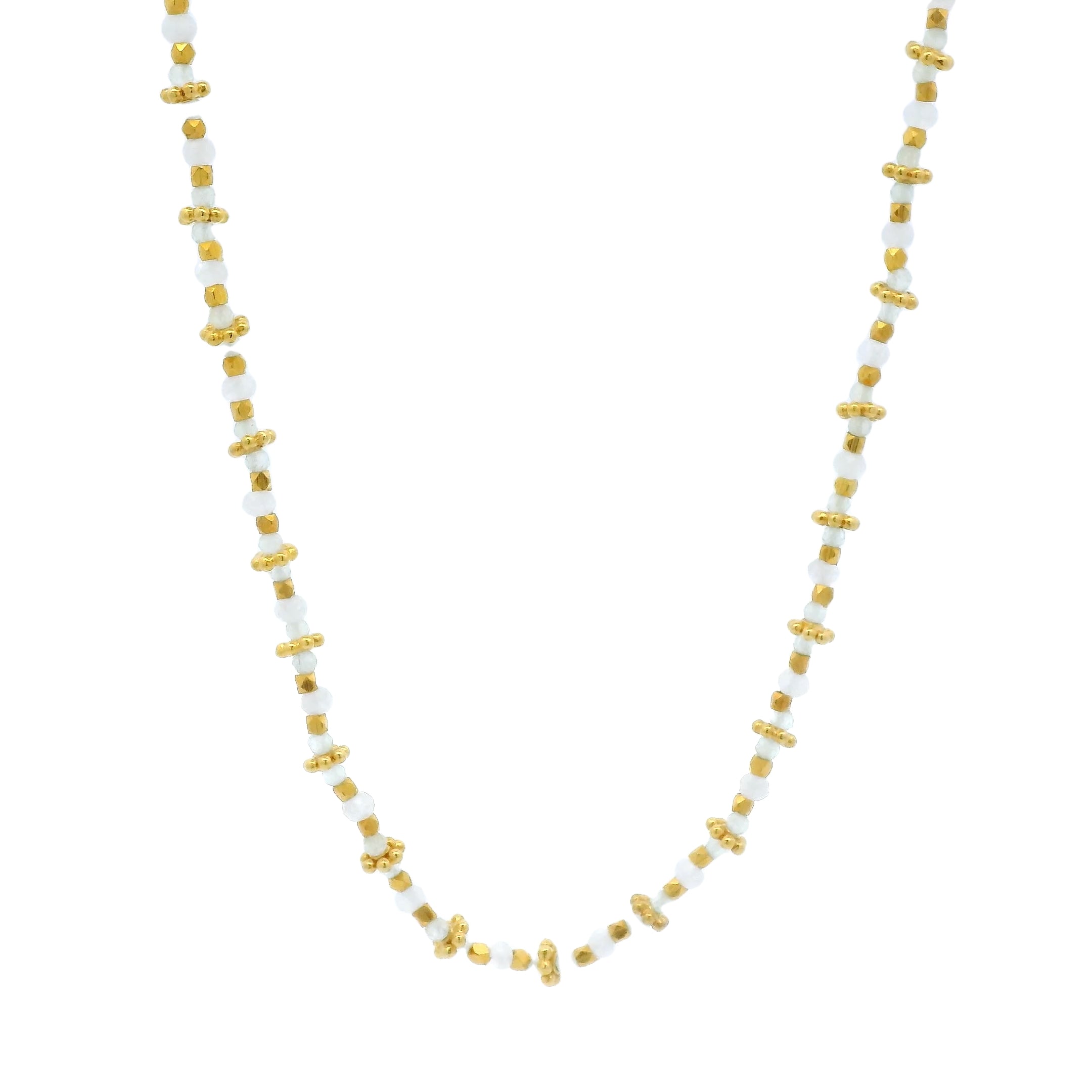 Collier doré pierre de lune et préhnite 42 cm