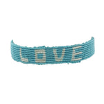 Bracelet brésilien doré fil tissé bleu et crème "love"