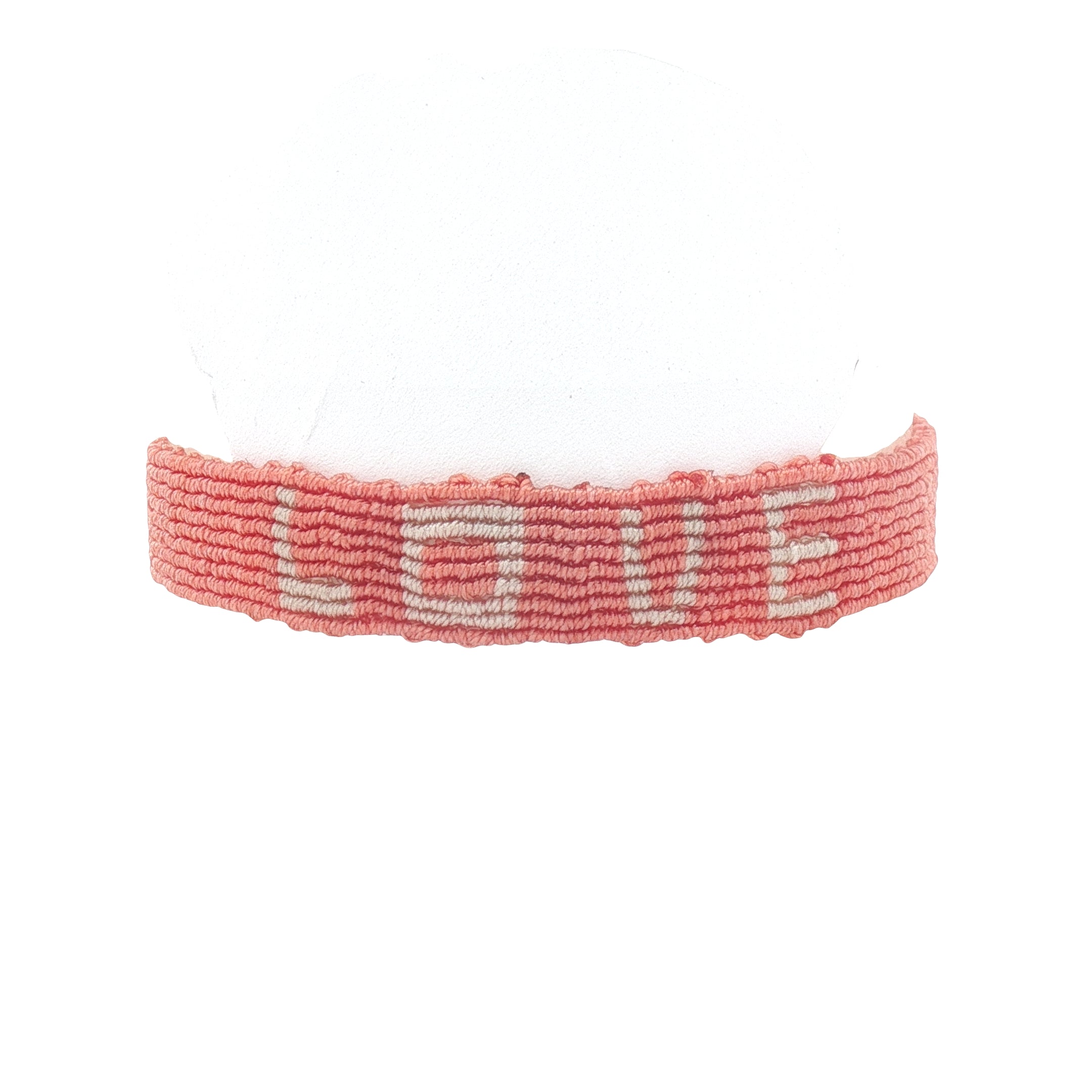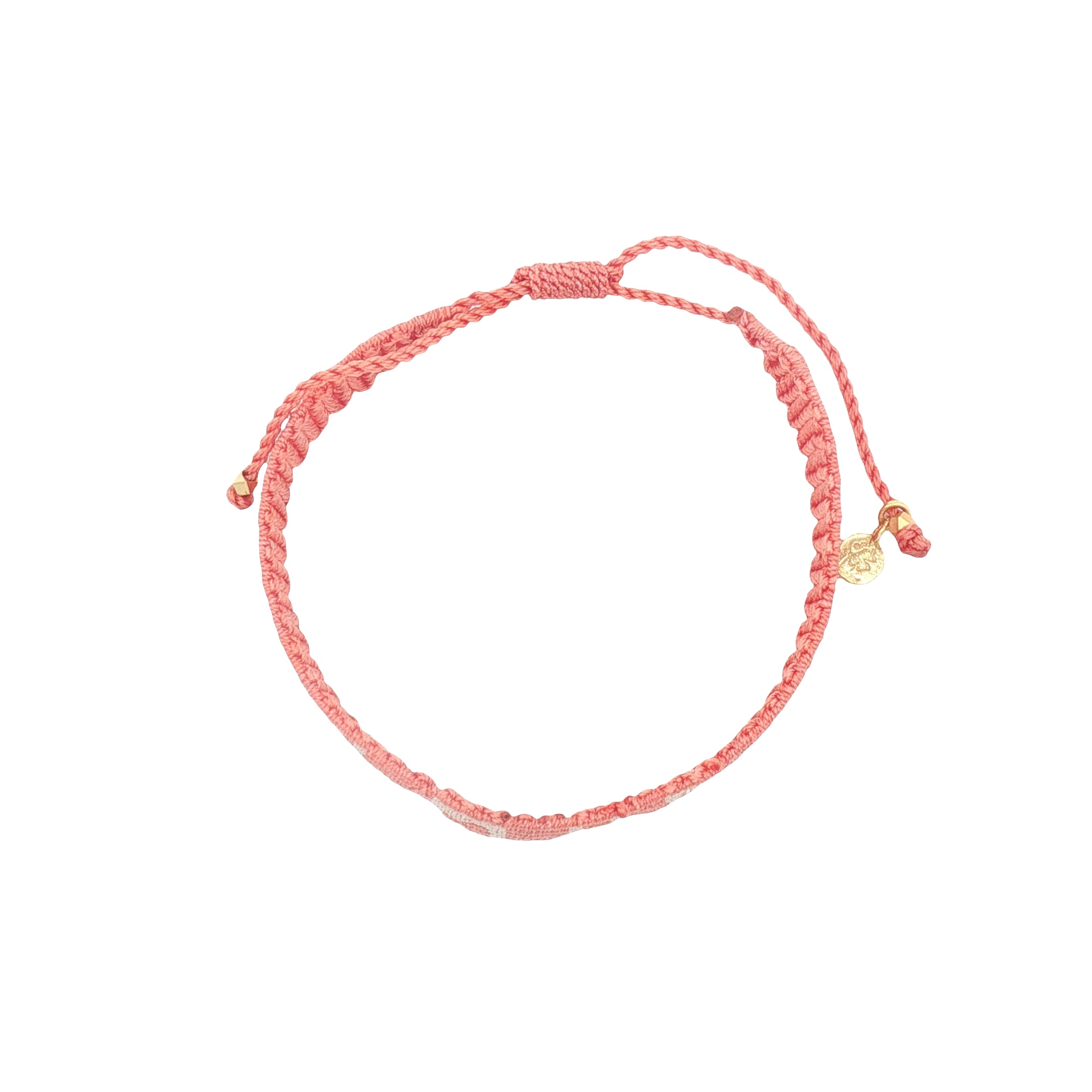 Bracelet brésilien sur fil fin corail et crème en nylon tissé à la main