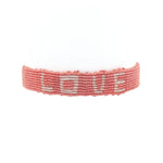 Bracelet brésilien doré fil tissé corail et crème "love"