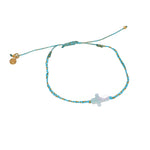 Bracelet doré sur cordon avec croix en nacre