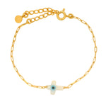Bracelet doré maille rectangle petite croix oeil en nacre
