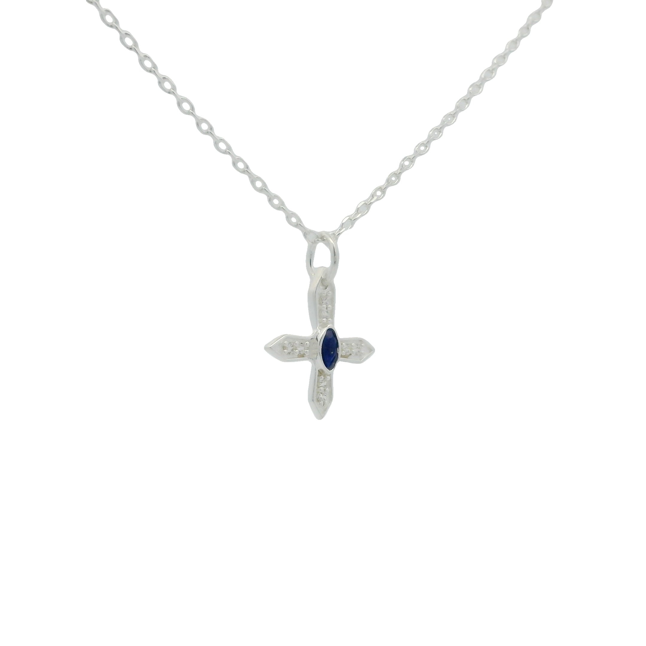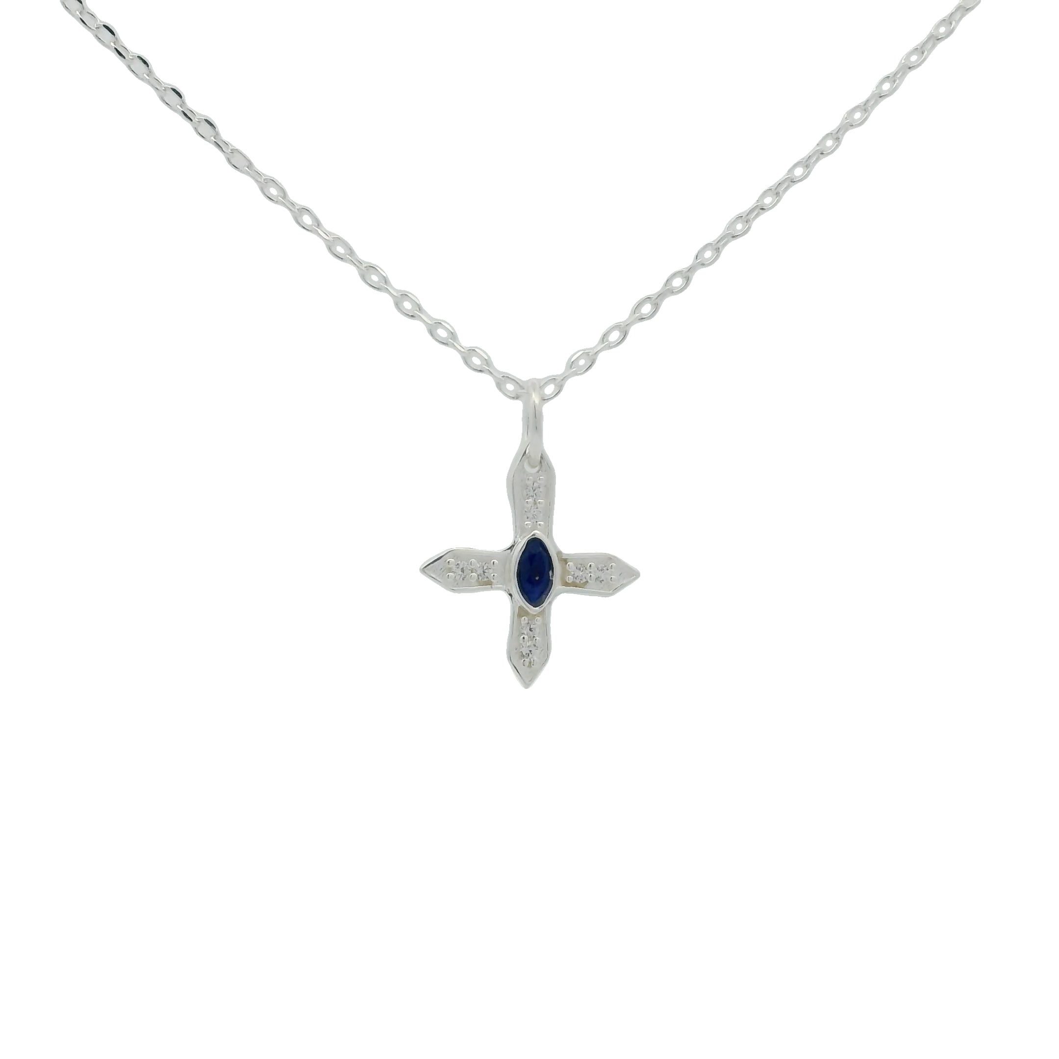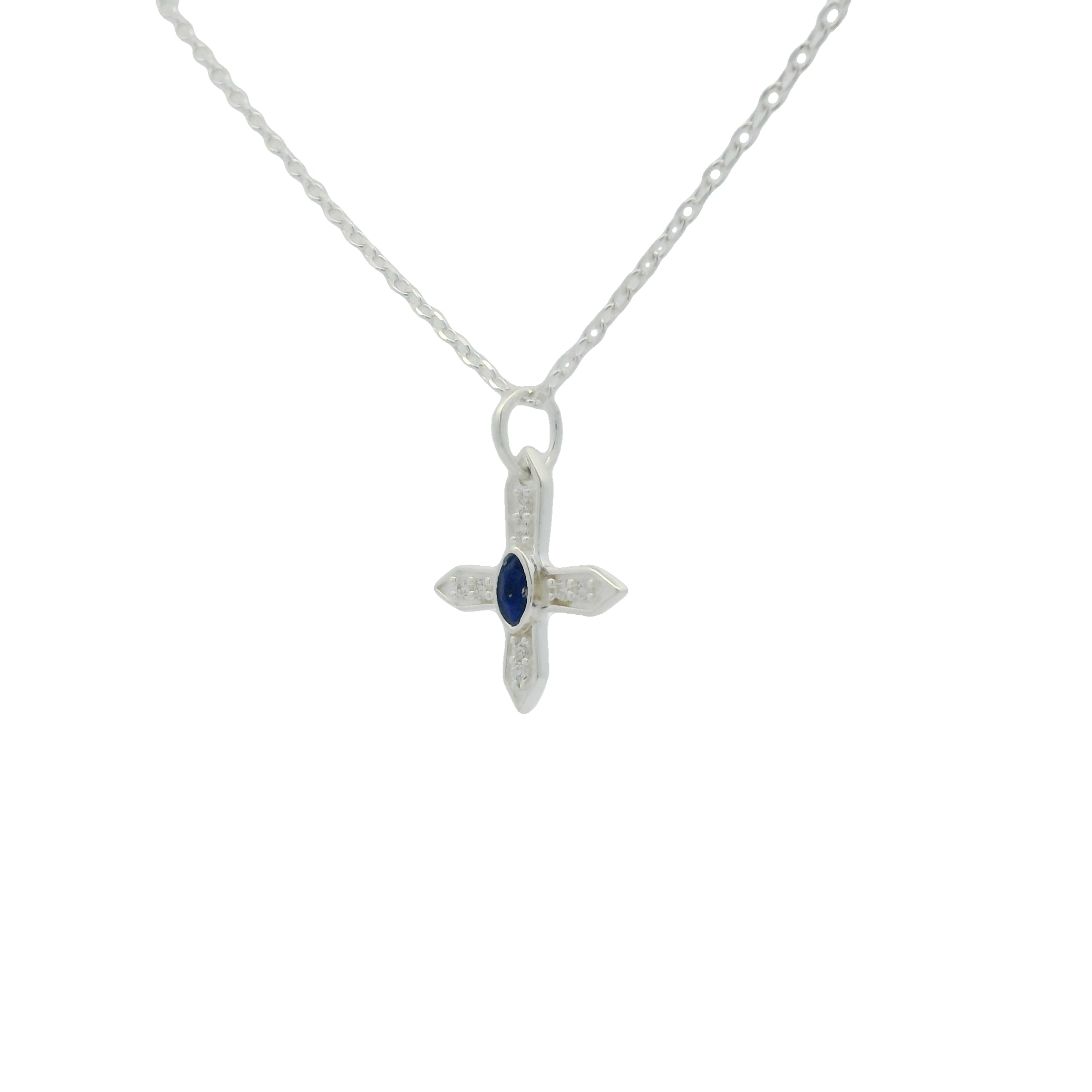 Collier en argent 925 croix zircons blancs et lapis lazulis 42 cm