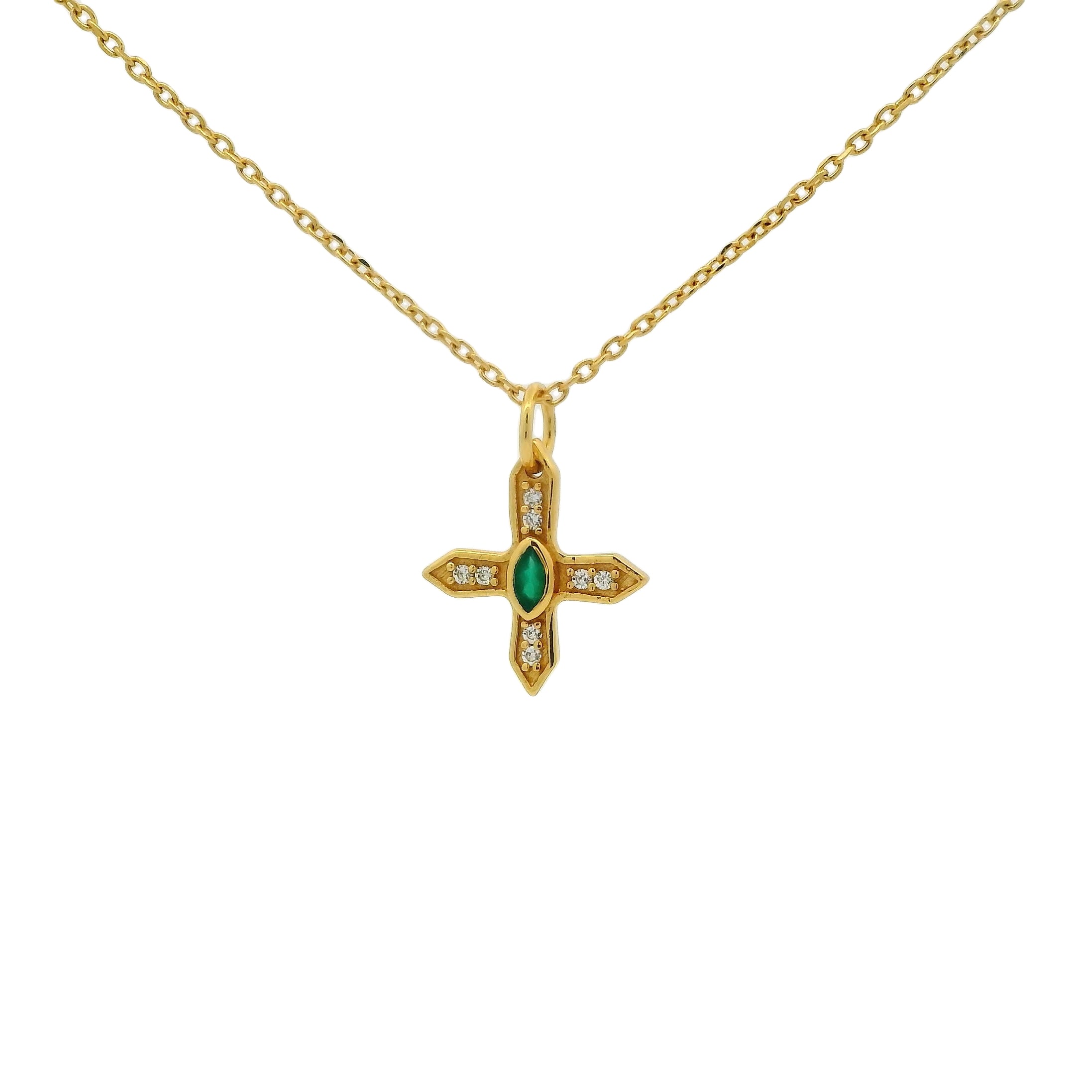 Collier petite croix onyx verte et zircons blancs 42 cm