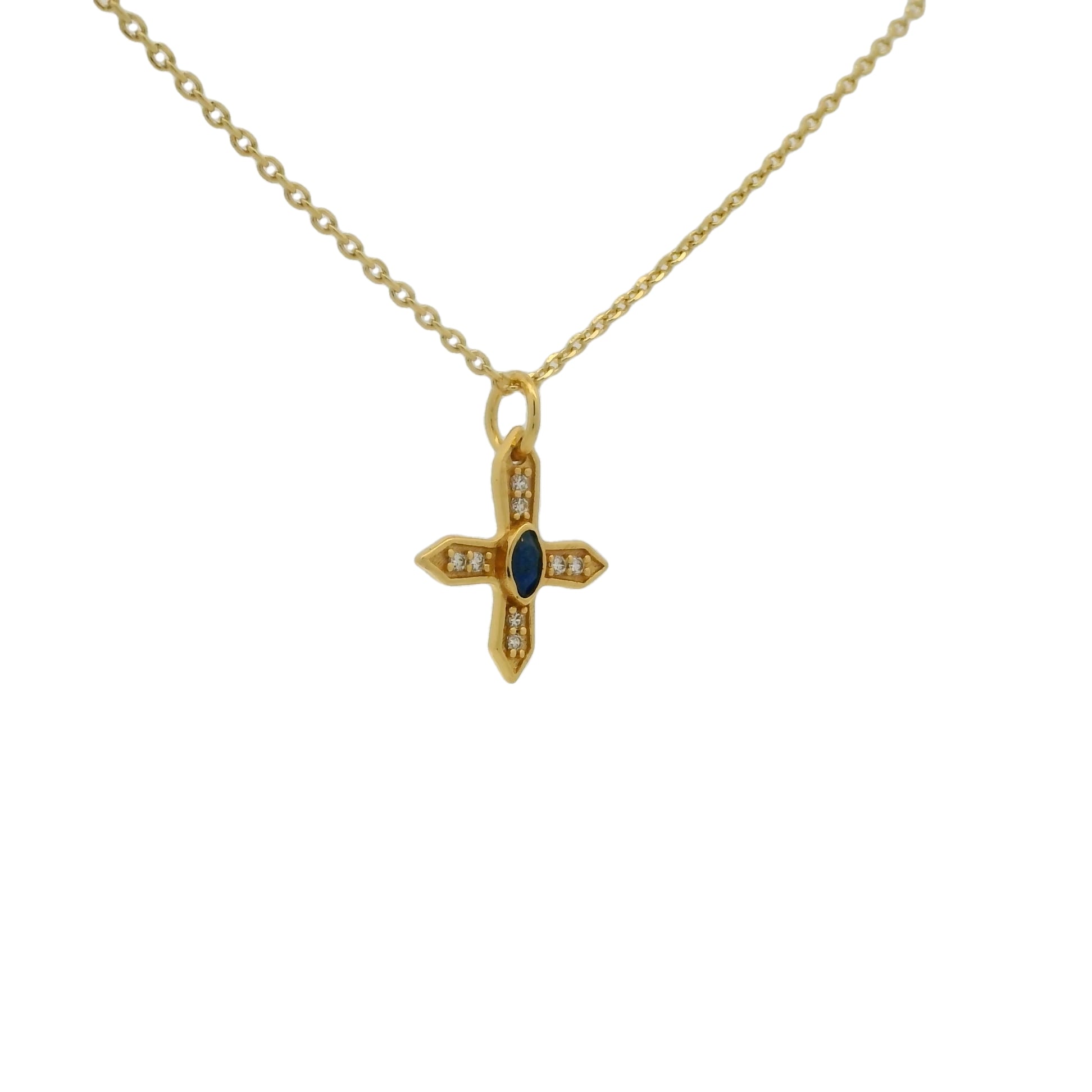 Collier petite croix lapis lazuli zircons 42 cm