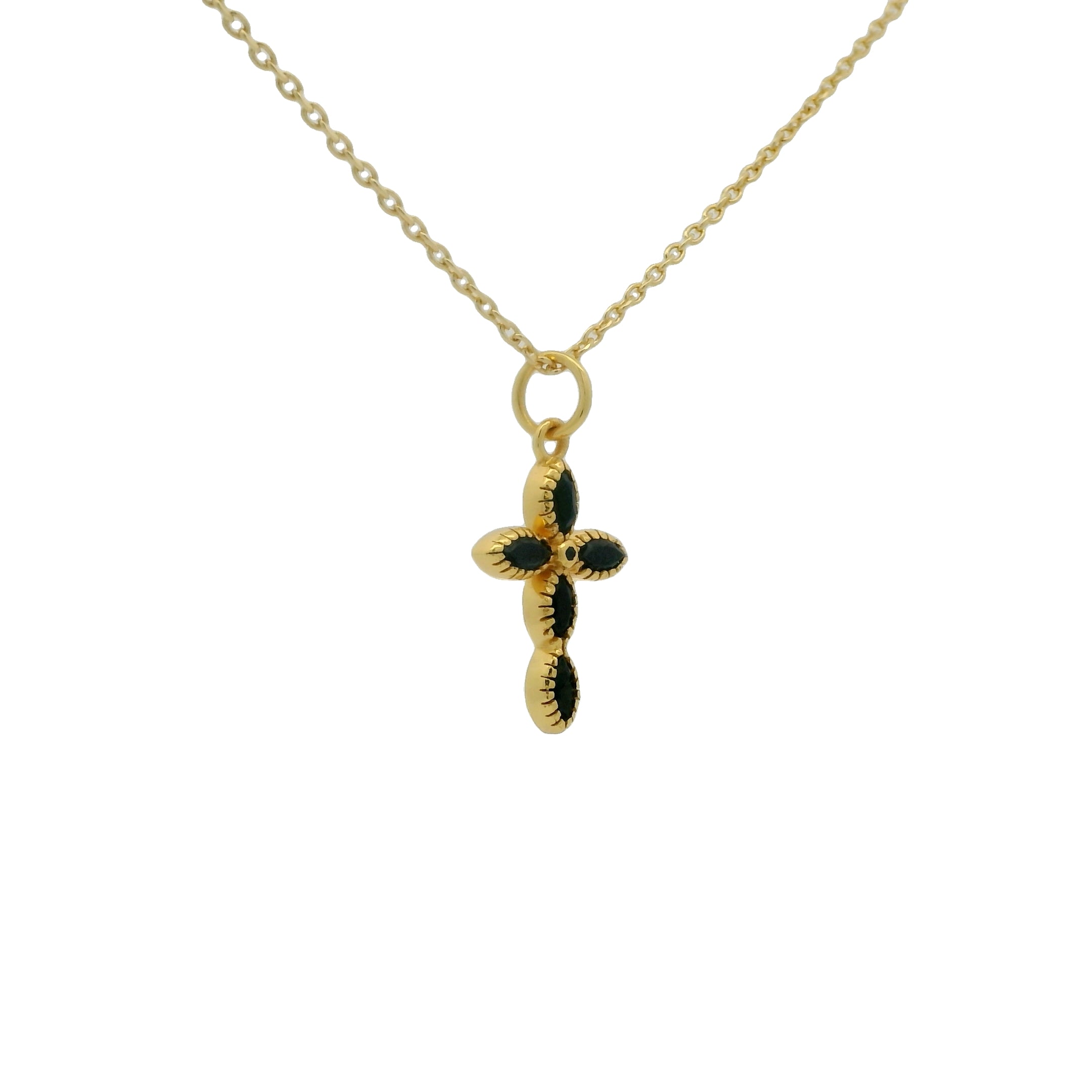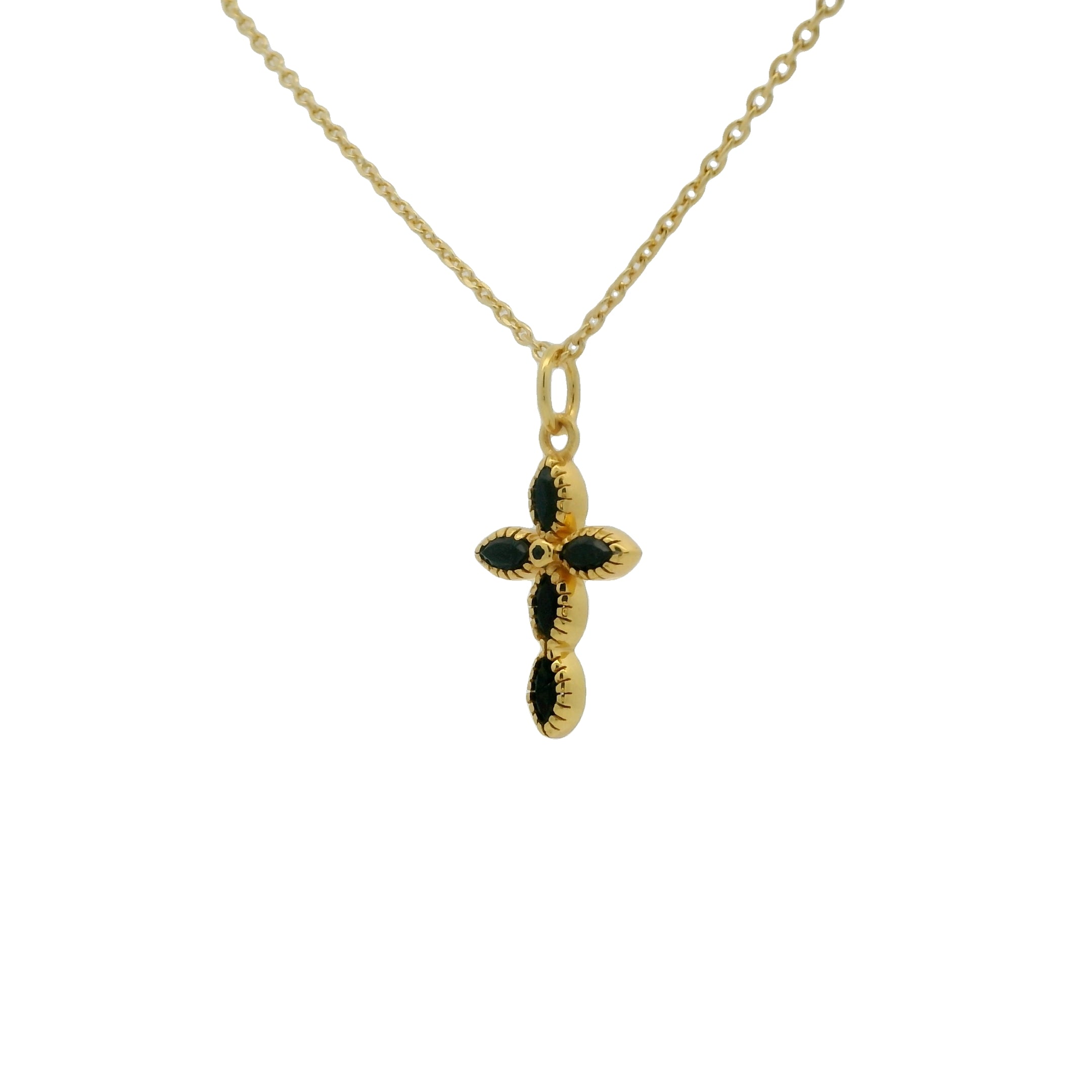 Collier doré croix fleur et pierre - ONYX NOIRE