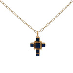 Collier doré croix lapis lazulis 42 cm