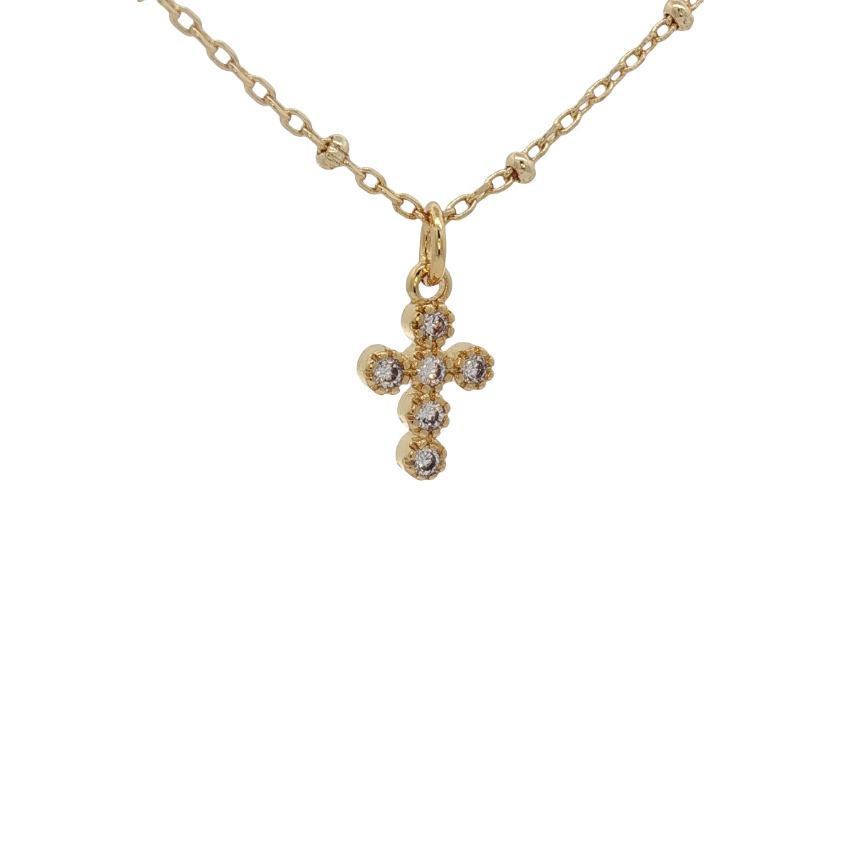Collier doré petite croix avec zircons 38 cm