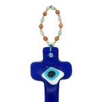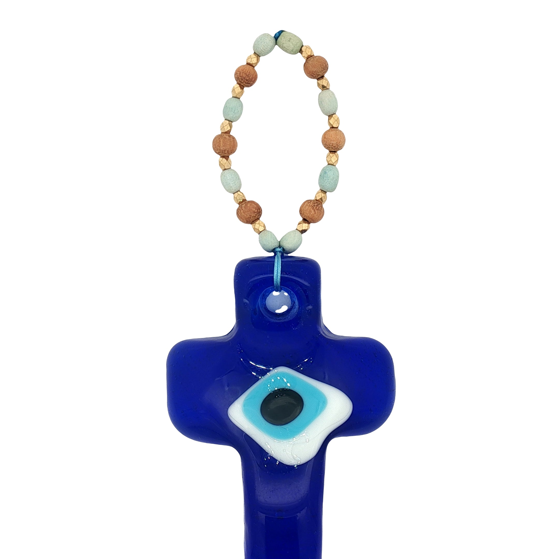 Croix en pâte de verre soufflé bleu : 72 mm x 49 mm