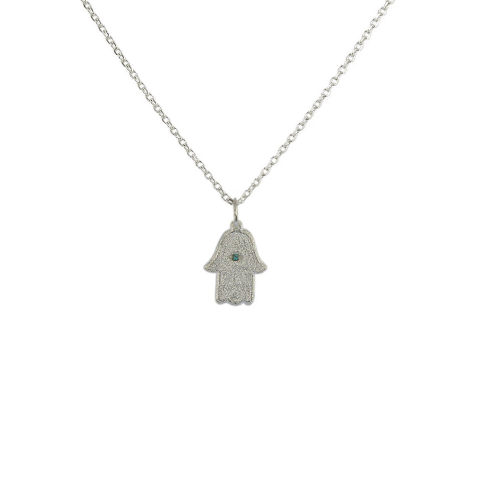 Collier en argent 925 et pendentif Main de fatma texturée incrustée d'un zircon blanc