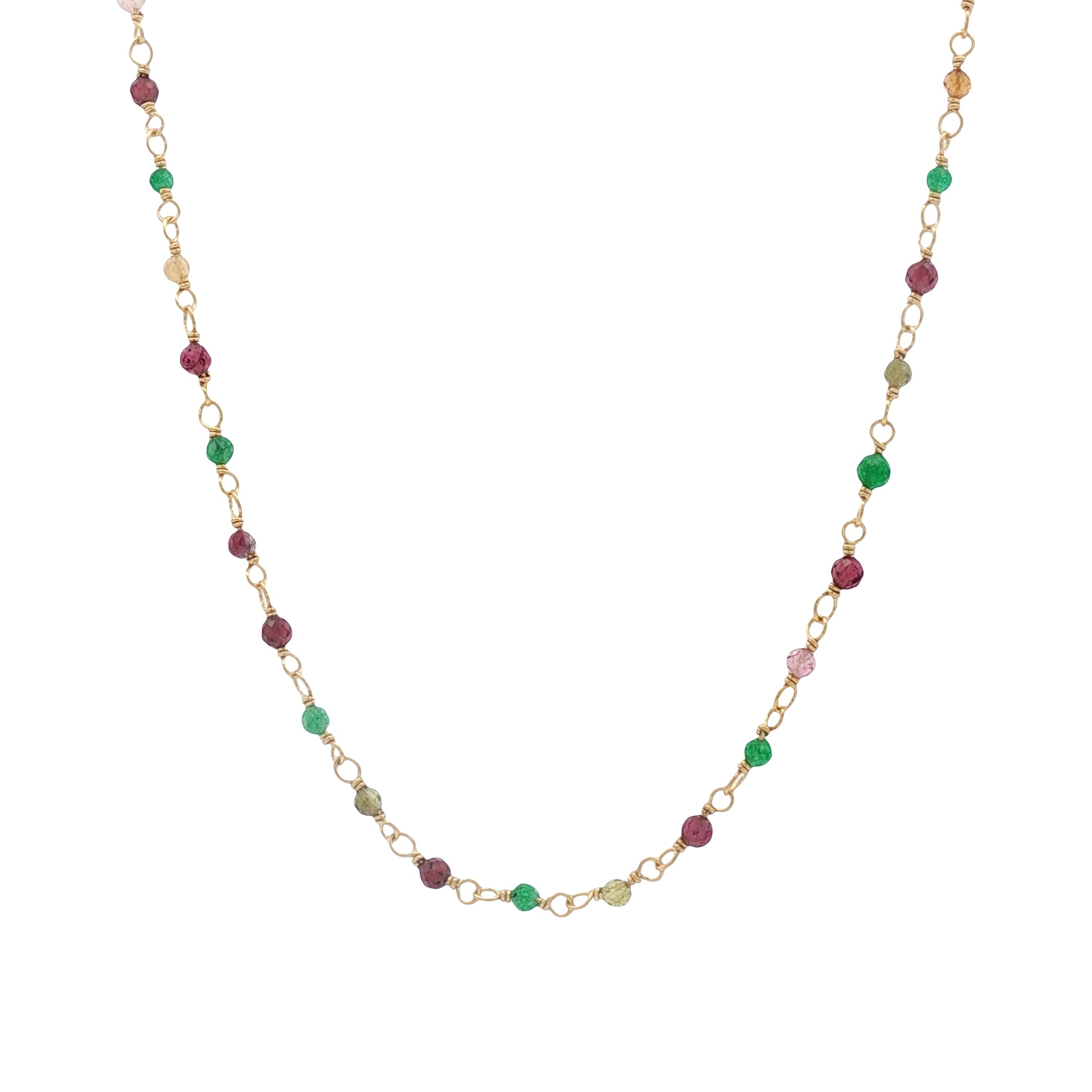 Collier doré Santa Maria en Onyx Verte, Grenat et Tourmaline