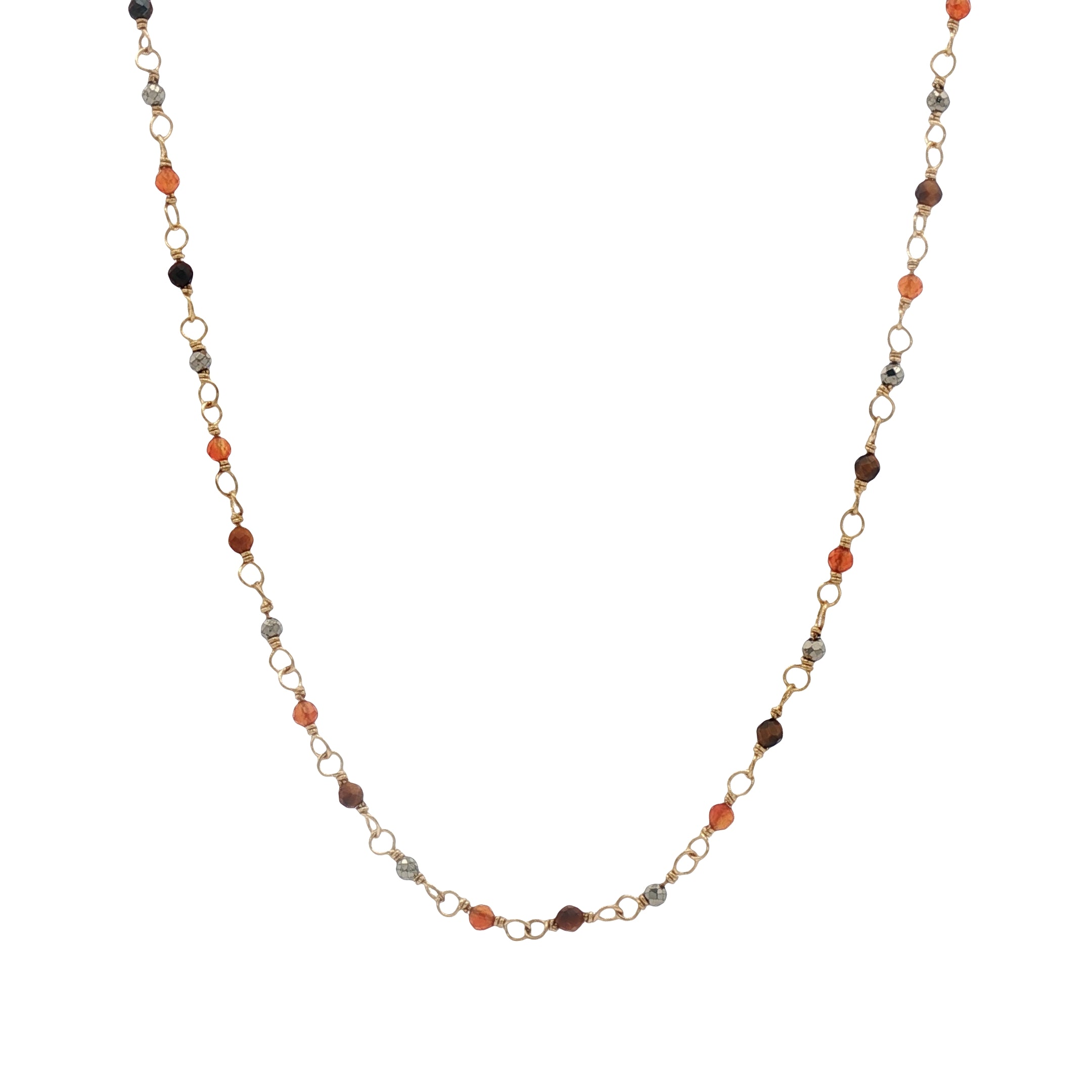 Collier doré santa maria en onyx rouge, pyrite et oeil de tigre