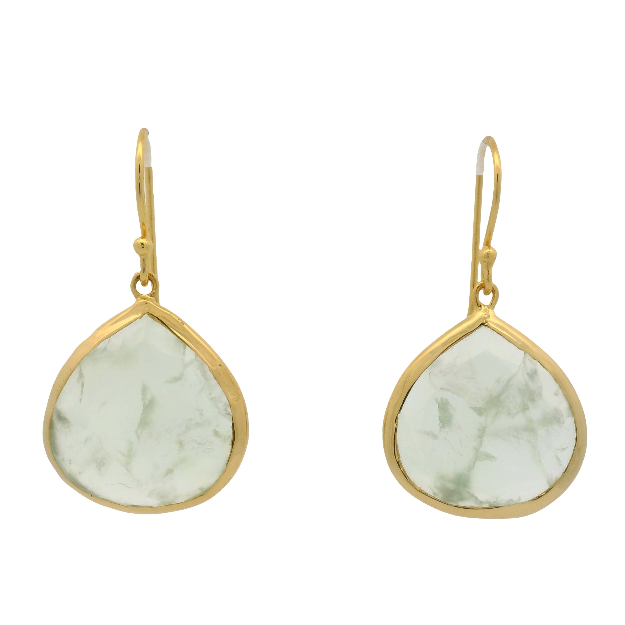 Boucles d'oreilles dorées en prehnite sertis clos