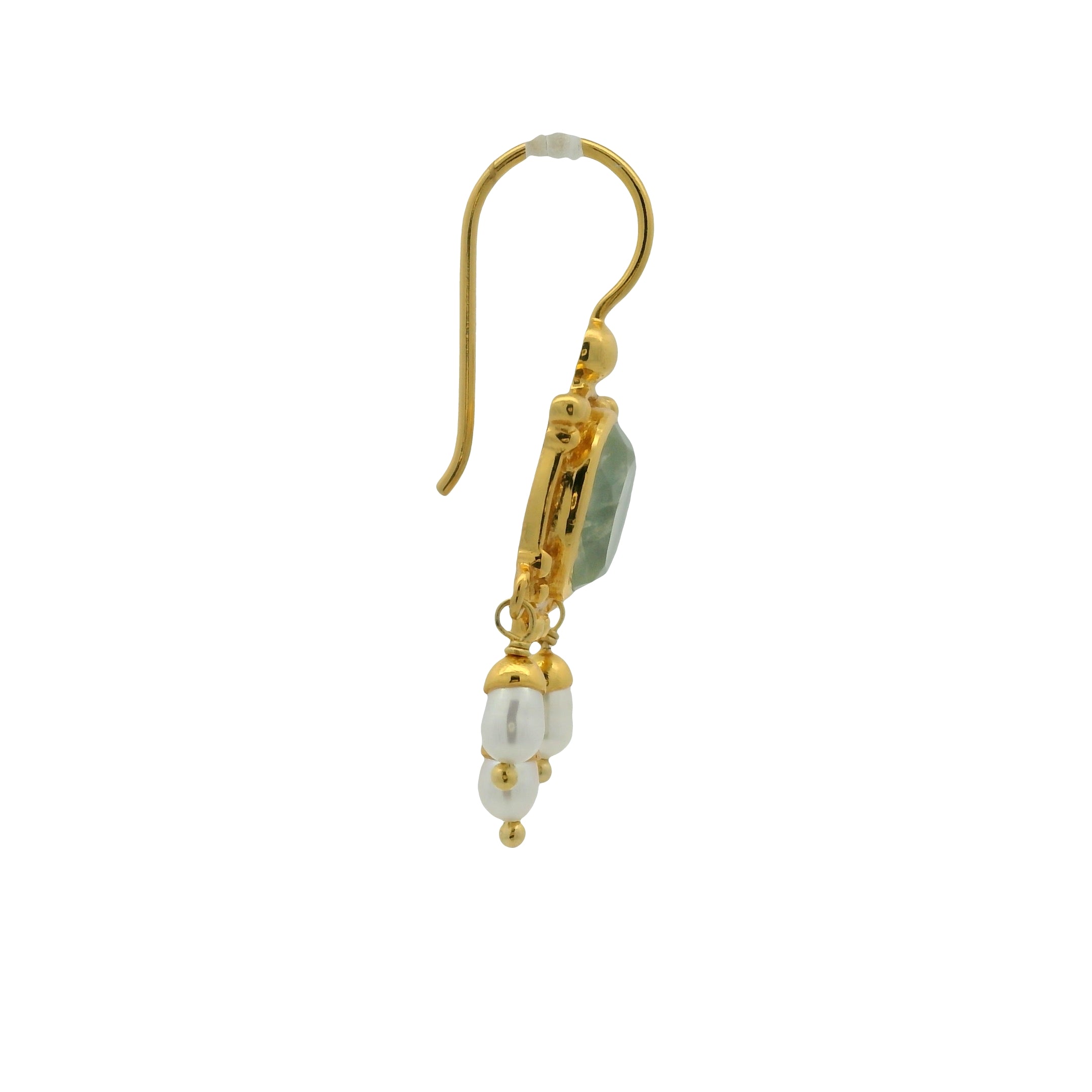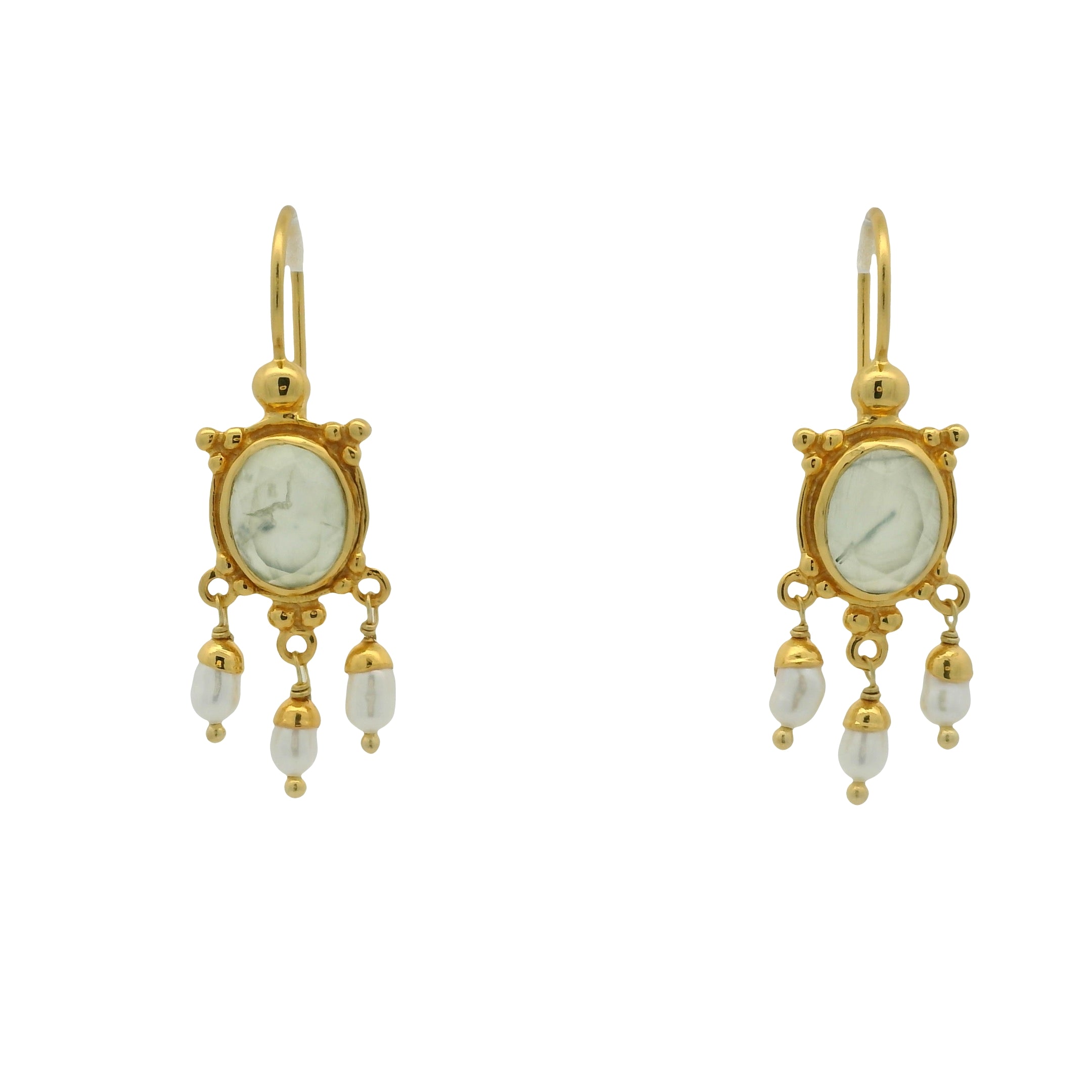 Boucles d'oreilles dorées tortue en prehnite et perles de culture