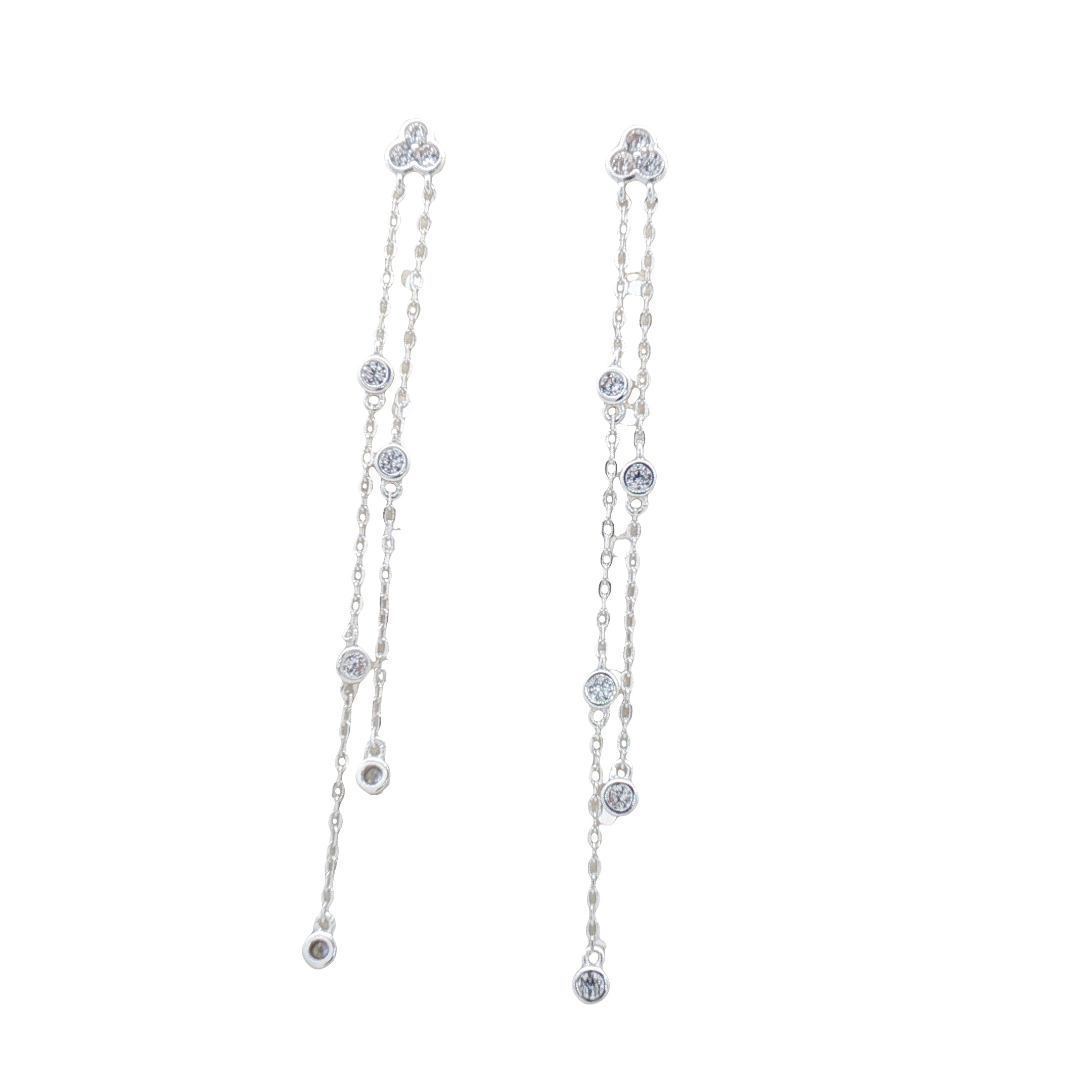 Boucles d'oreilles pendantes argent 925 double chaine avec zircons