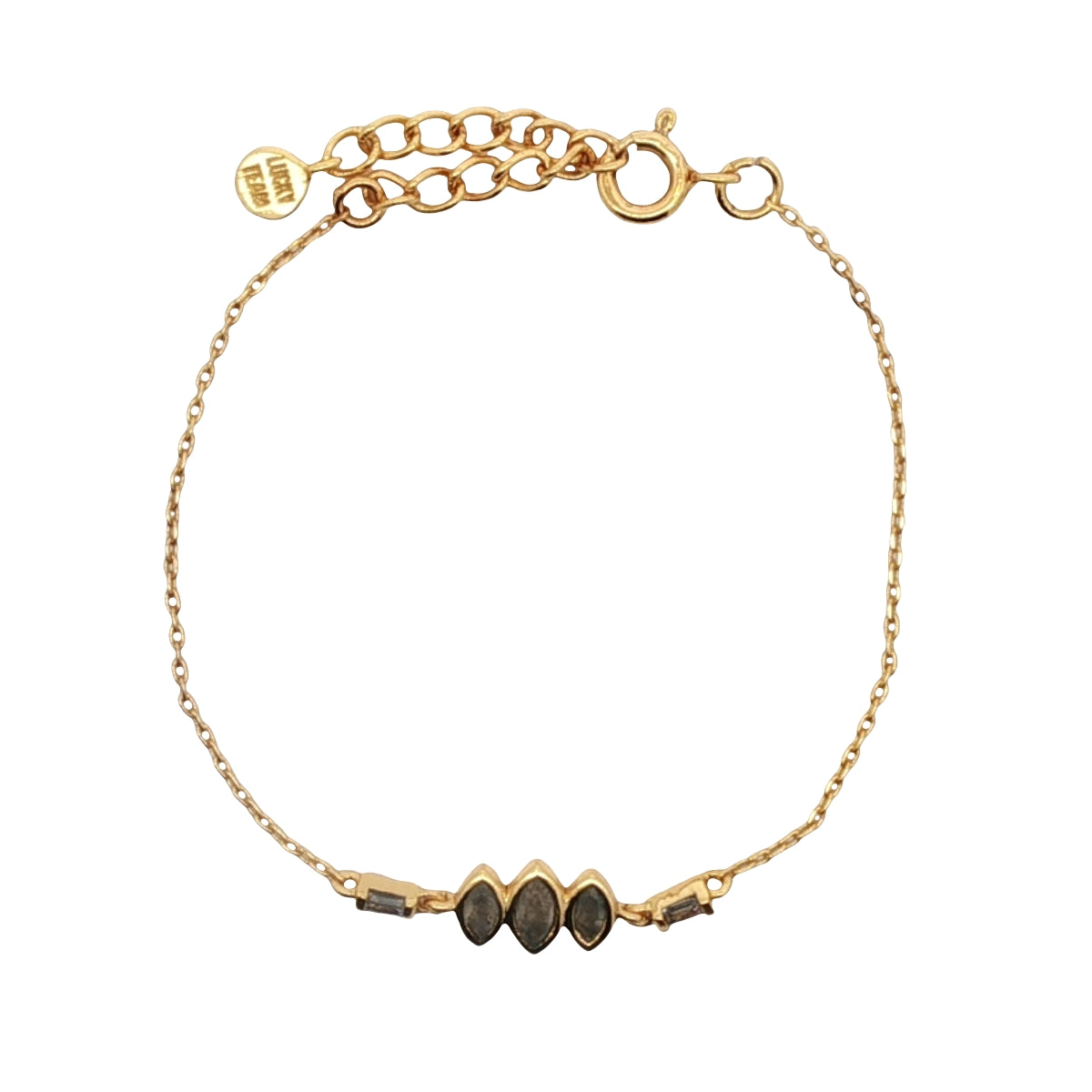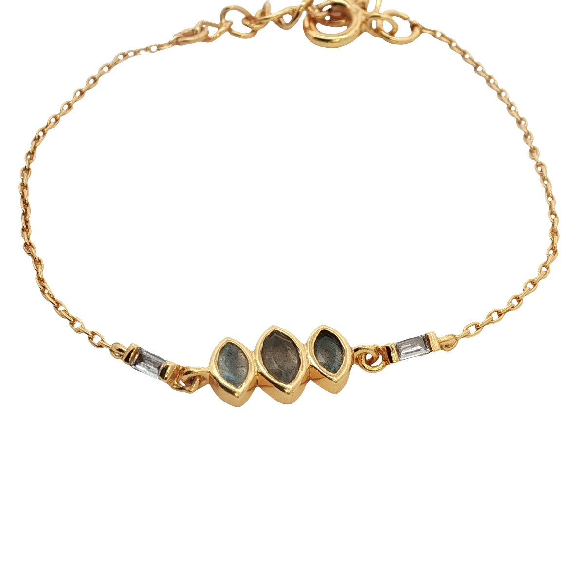 Trilogie de pierre labradorite et zircons en baguette sur les cotés