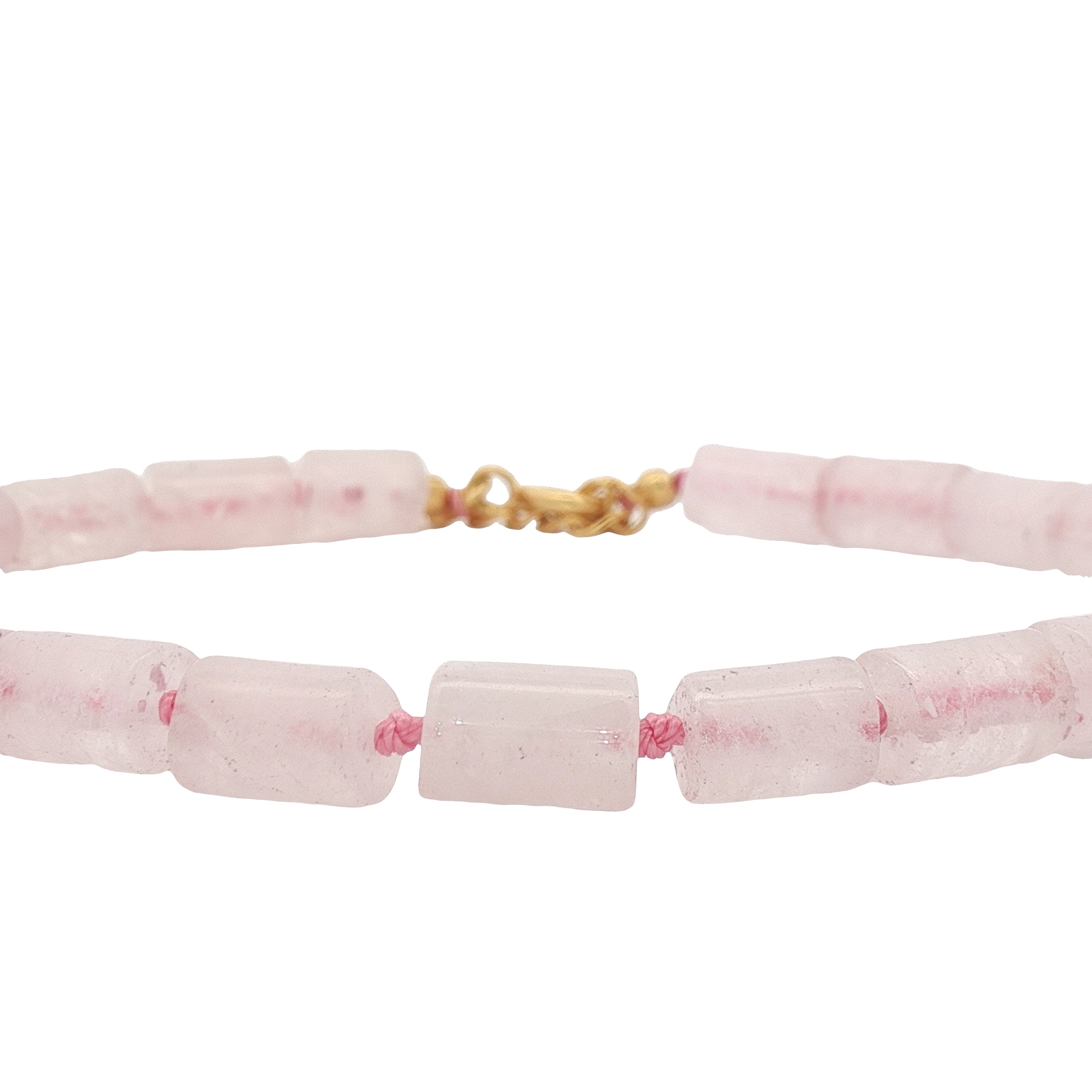 Chaine de cheville en Quartz rose alterné avec un noeud rose