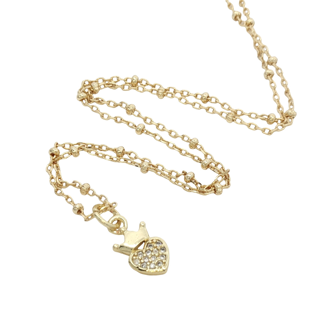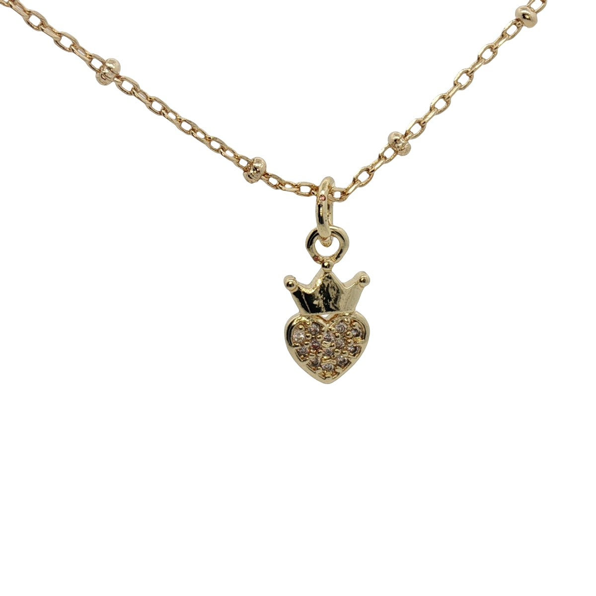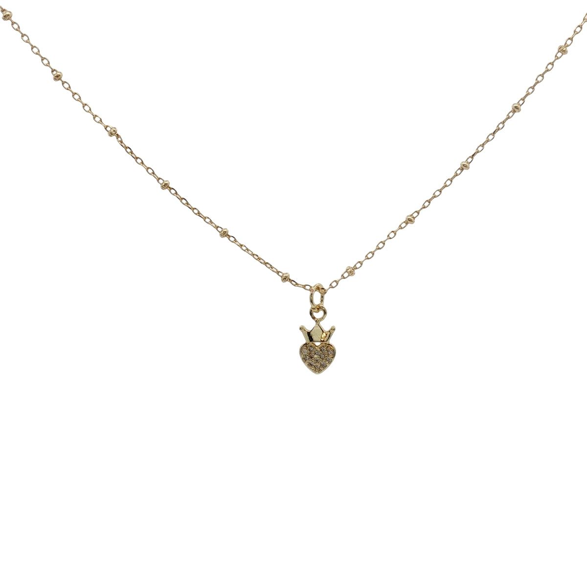 Collier doré mini coeur avec zircons et couronne 38 cm