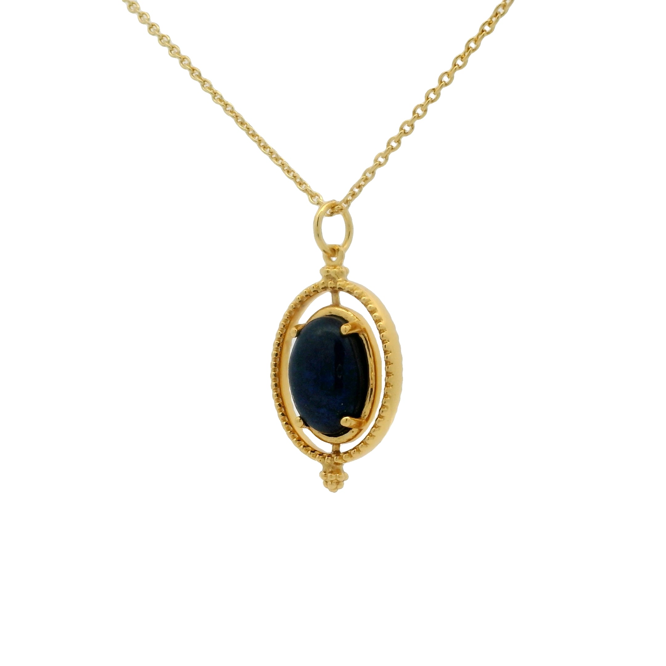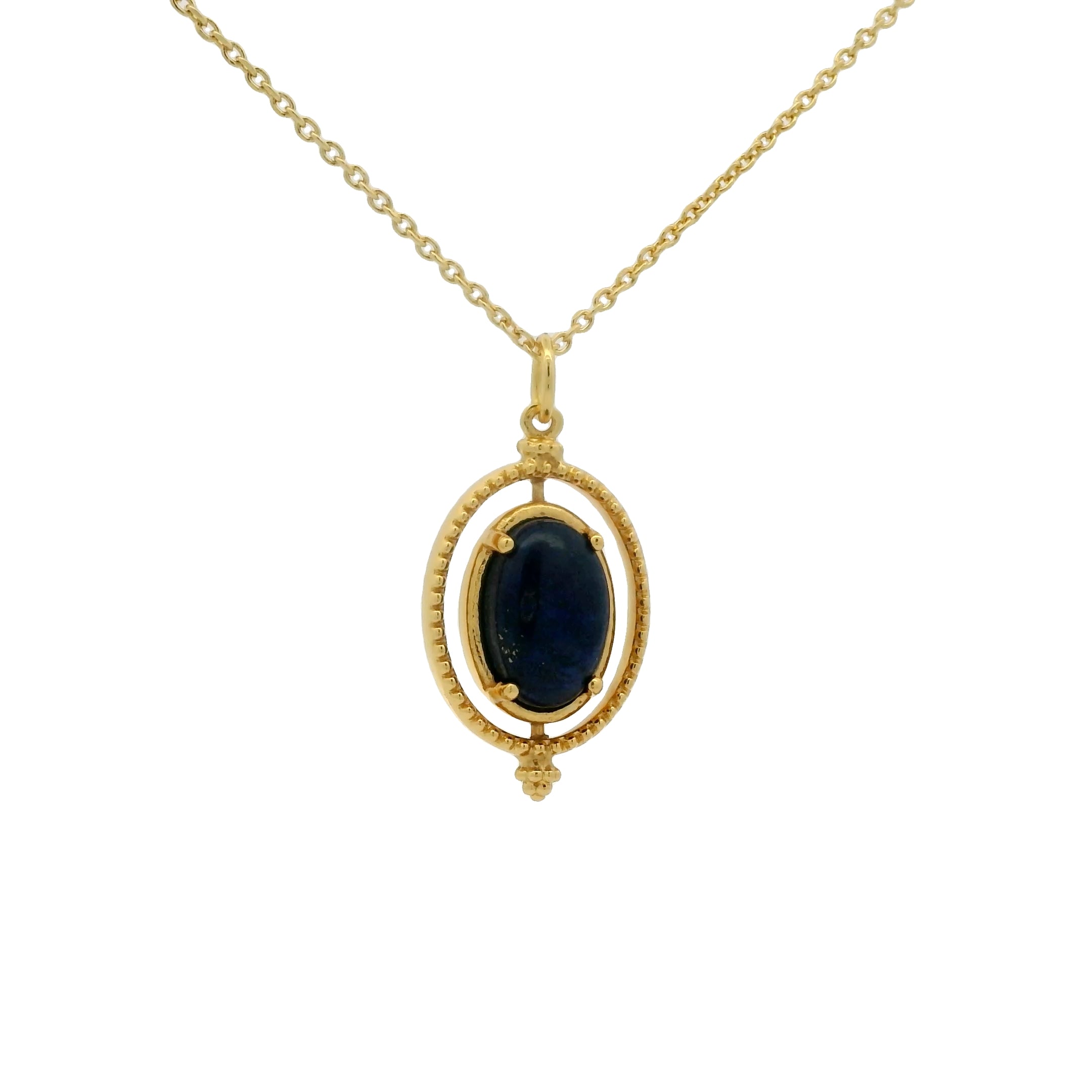Collier doré en lapis lazulis ovale cabochon qui pivote 42 cm