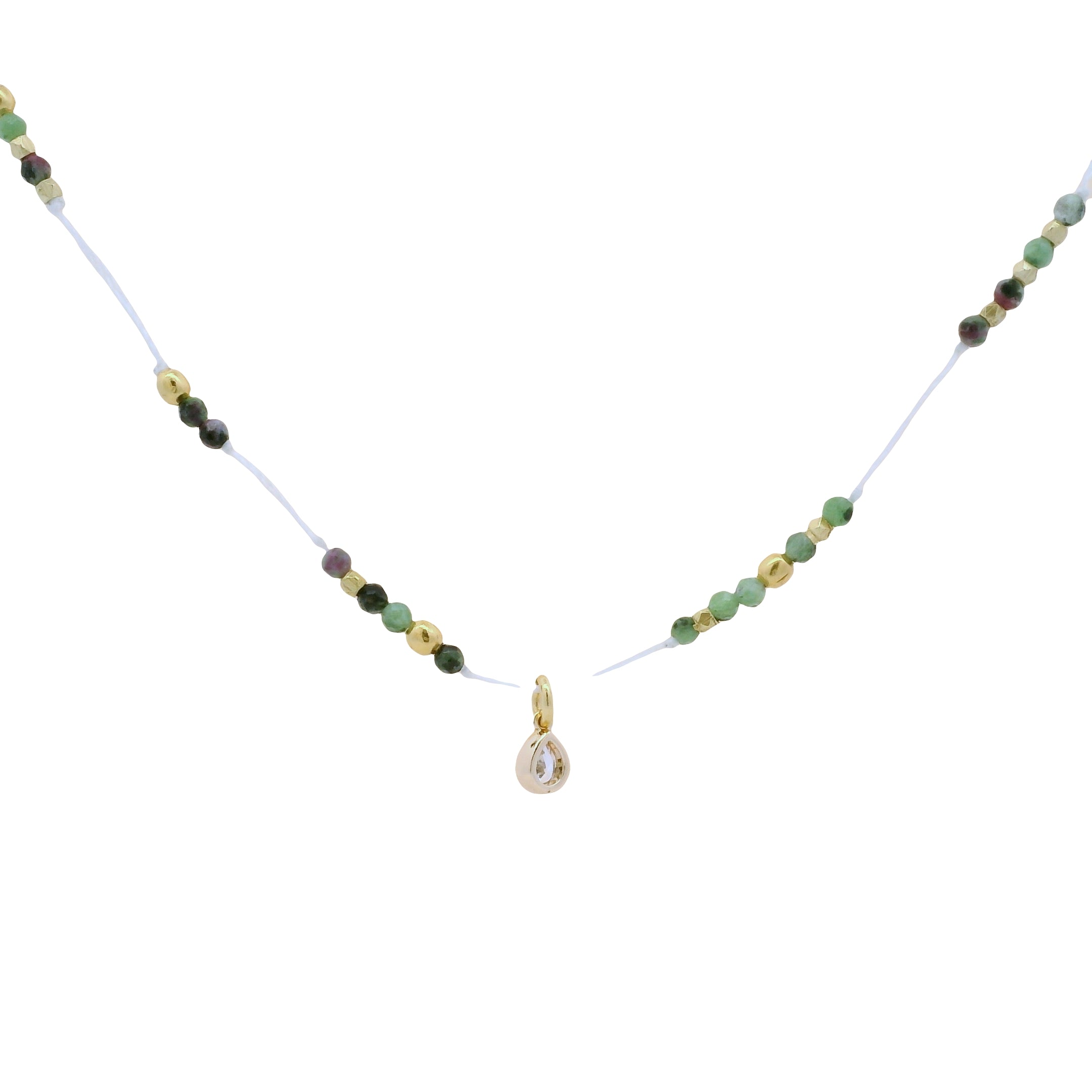 Collier doré fil blanc rubis zoisite facettées et pendentif zircon 42cm