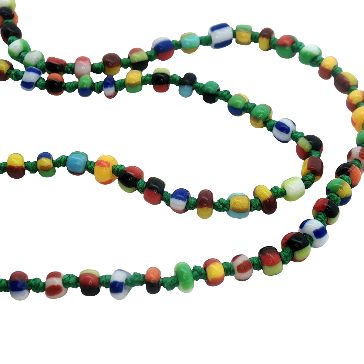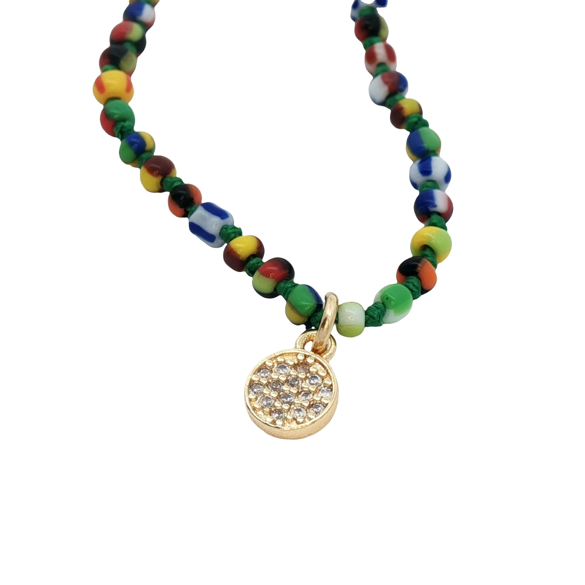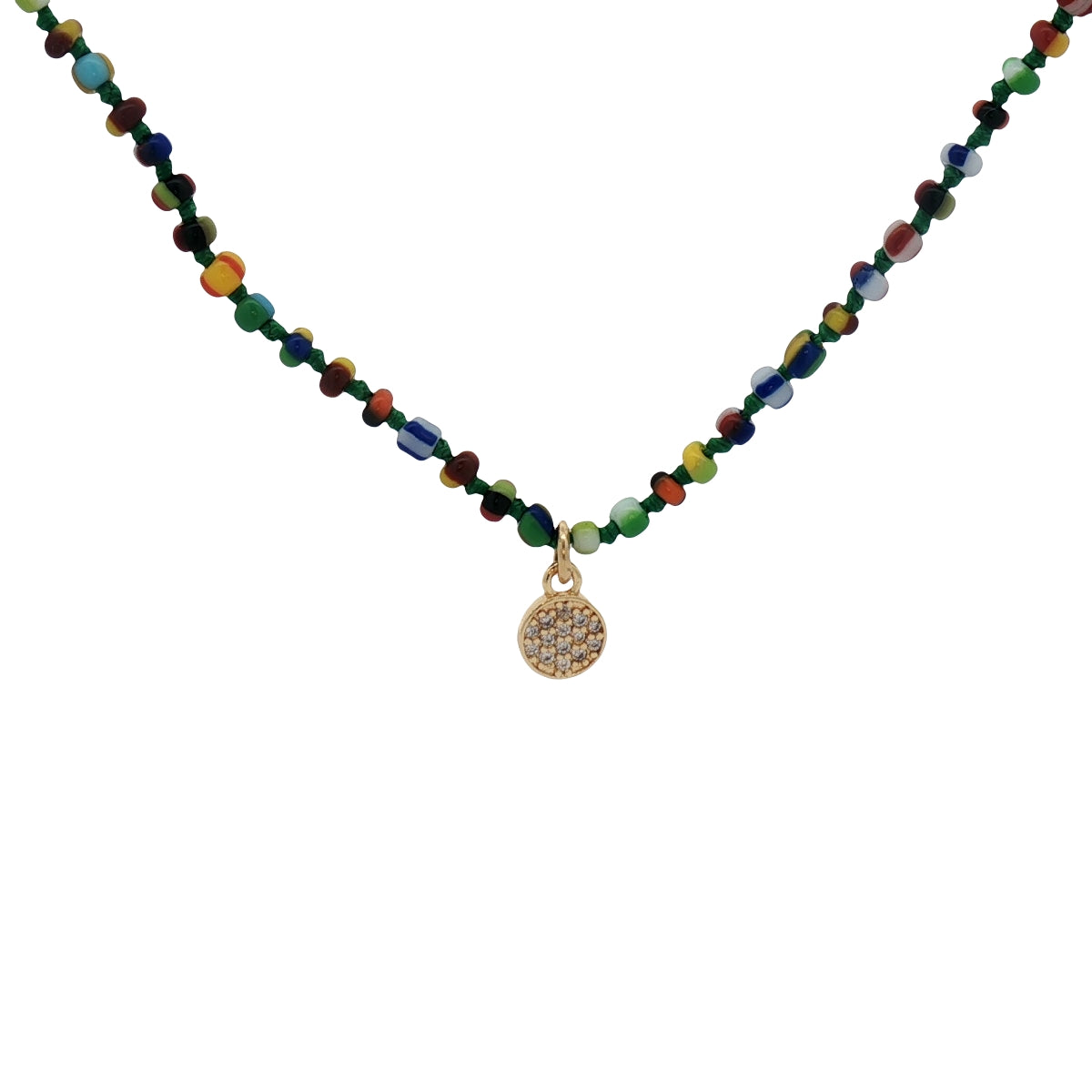 Collier perles multicolores alternées avec un noeud vert