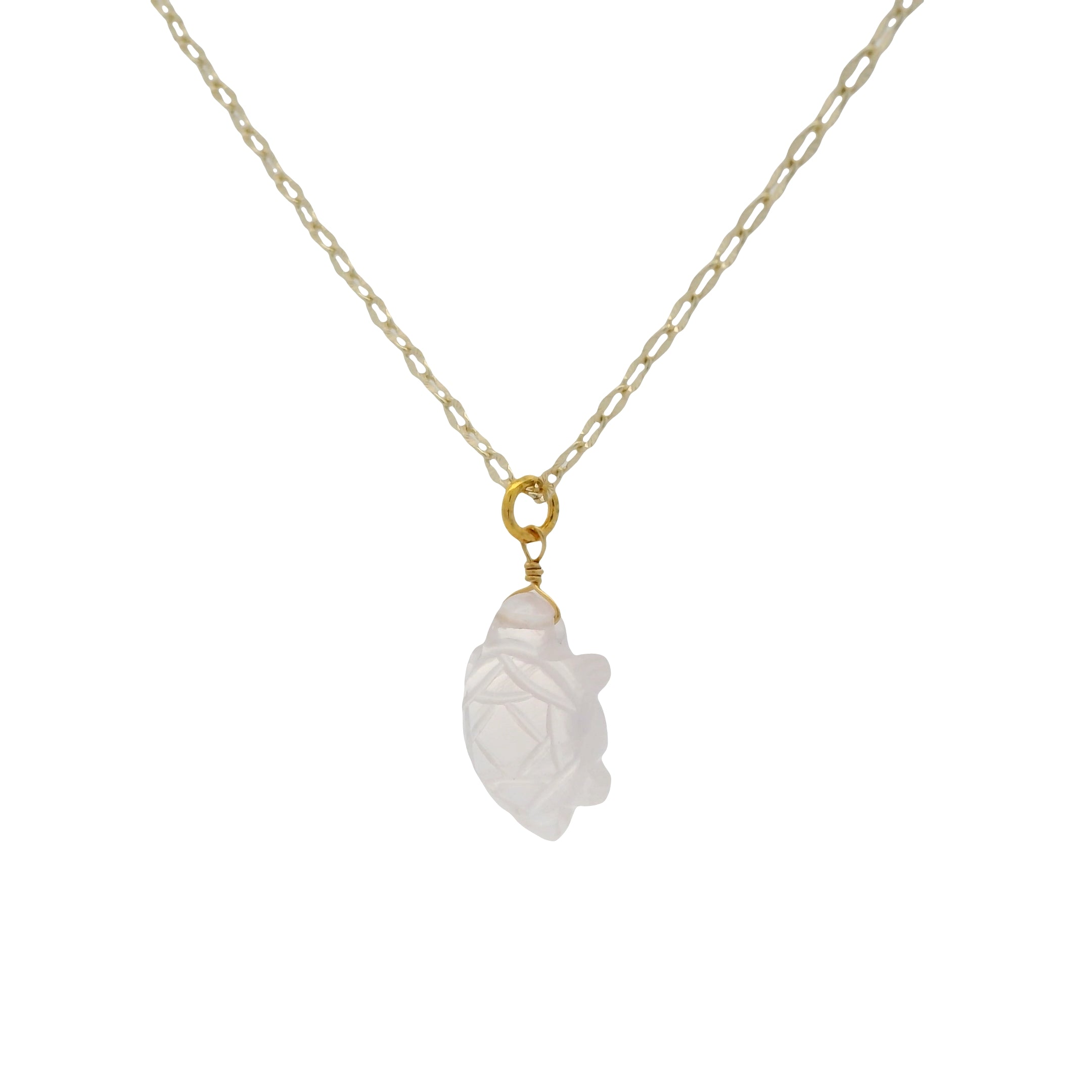 Collier doré tortue en quartz rose 42cm