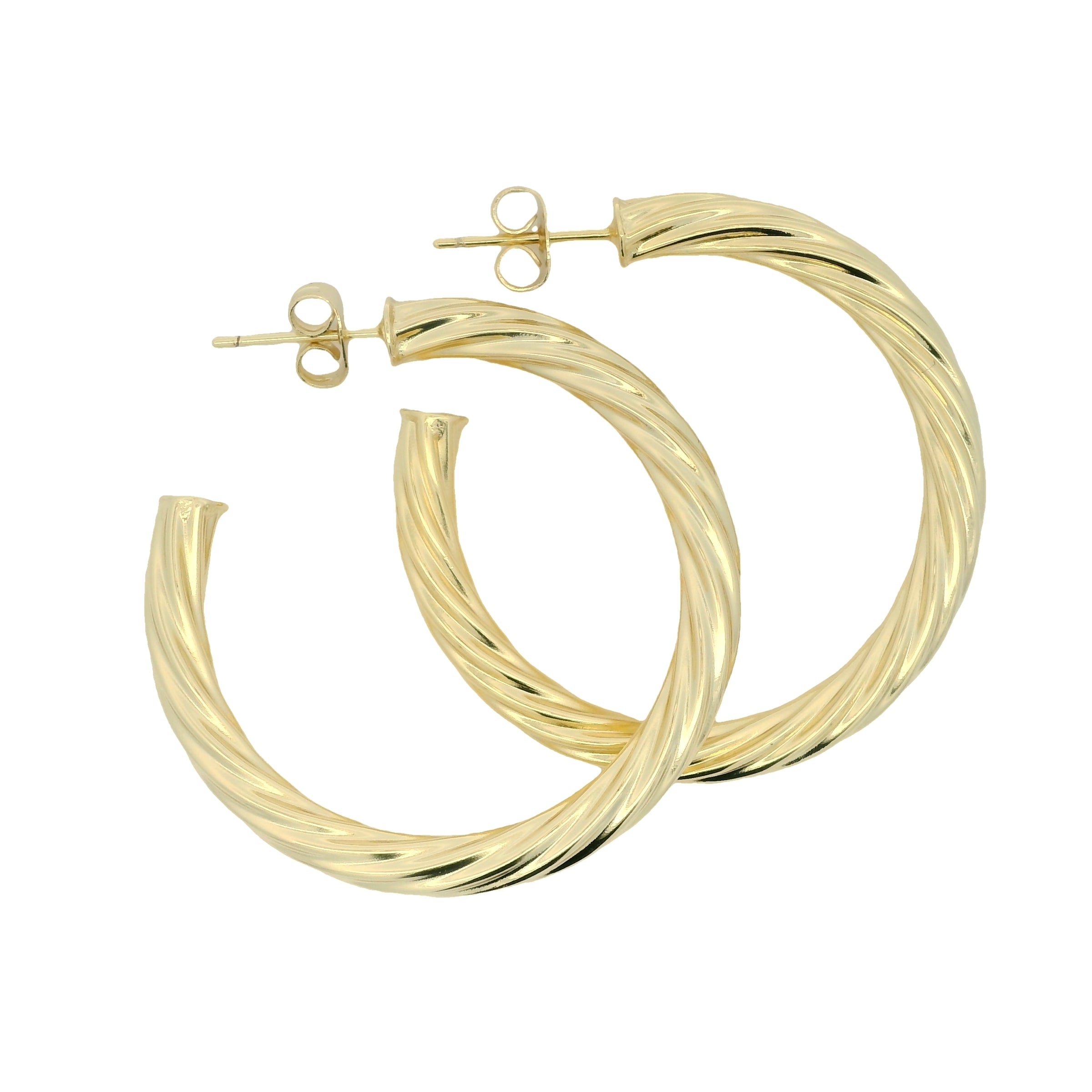 Boucles d'oreilles créoles torsadées en laiton doré à l'or fin 18k