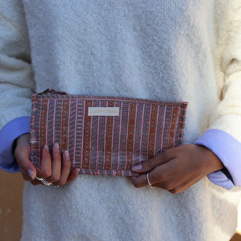 POCHETTE BLOCK PRINT ROSE ET ORANGE